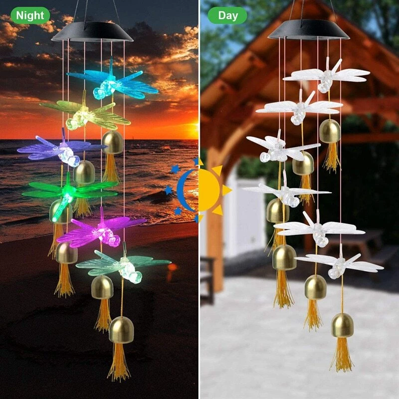 Features: *Solar Power Wind Chime: Set the switch to "ON" status on the back of solar panel and put it under sun for charging. Convenient to hang on, no wire or external electricity needed. Have an “S” hanging hook that attaches easily to roof overhangs or trees around your garden or patio. *Color-Changing Wind Chime: Light will light up automatically at night/when dark only,featuring color changing LED bulbs, calmly and softly changing from one color to the next in random. It is very pretty and look magical at night. *Waterproof Design: Waterproof IP44. Made of high quality and durable ABS material,no fade,no shape change,no fear of Ice and cold. *Outdoor/Indoor Decor: Decorate your outdoor or indoor space with these solar powered waterproof wind chimes. Ideal for lawn, porch, garden, patio, yard, hall, roof, living room, bedroom decoration. *Great gift for Christmas, Birthday, Holiday, New Year, Thanksgiving, Easter, Halloween, Valentine's Day, Mother’s Day, Father’s Day. Specification: Material: ABS Plastic Switch: ON/OFF Solar Panel: 2V 100mA Built-in Battery Capacity: 1.2V 600mAh Charging time: 6-8 hour in direct sunlight environment Working Time: 6-8h after fully charge Package Included: 1 X Solar Wind Chime Light 1 X User Manual 1 X Spinning Hanging Hook NOTE: *Install the solar wind chime correctly where it can get direct sunlight,leave the switch to "ON" position. *Select an outdoor location which AWAY FROM OTHER LIGHT SOURCES AT NIGHT, such as street lights,or it may not turn on automatically at night.The light sensor is very sensitive and make sure the solar panel is not expose in light. *Keep the solar panel clean and direct sunlight. *Please understand that this light is used to create an atmosphere,not for lighting,so it is not too bright as other light for lighting.