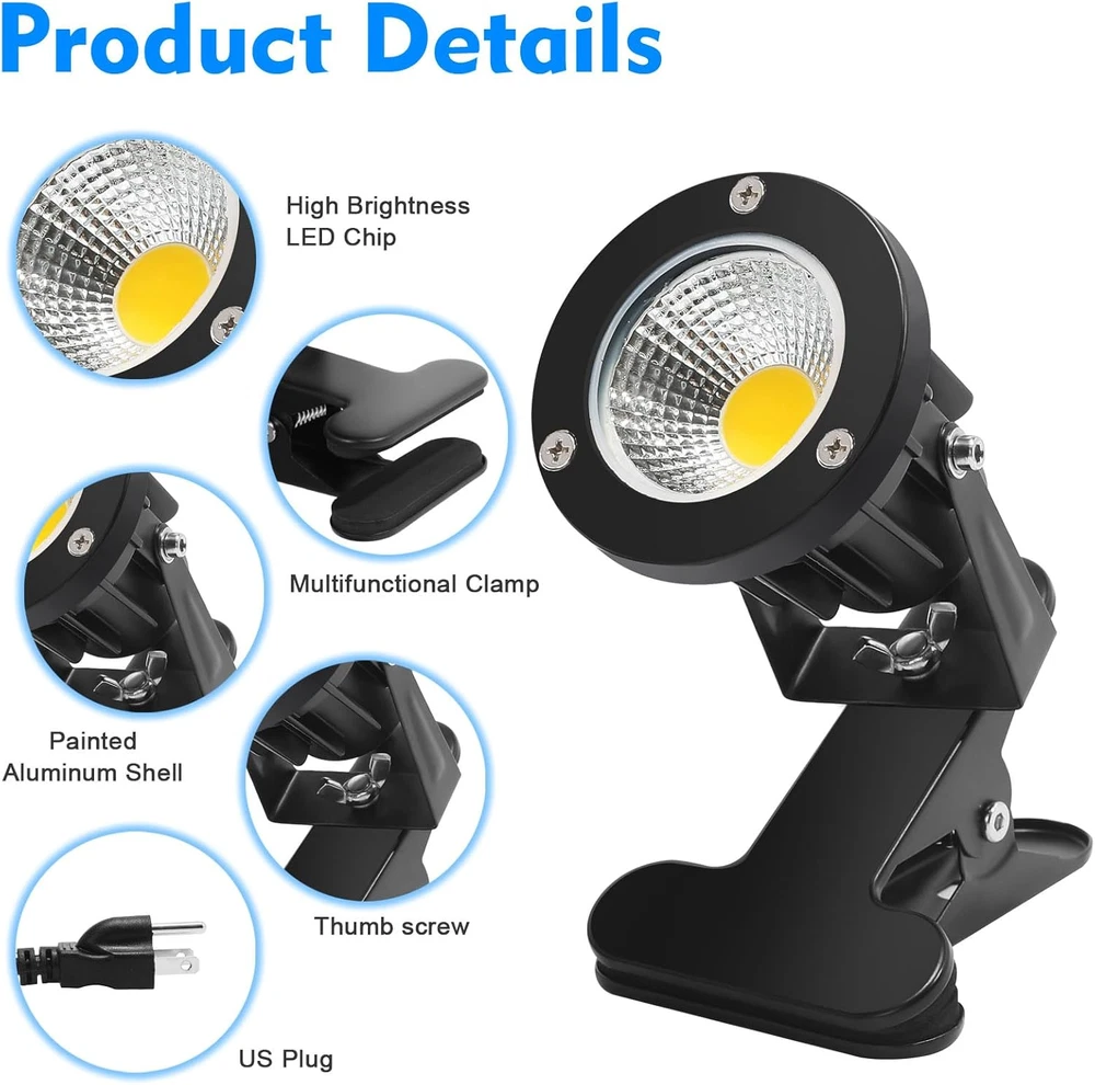 Store New Arrivals Add to Favorite View Feedback Contact LED Spot Lights Plug in Outdoor Indoor Light 7W 3000K 6.6Ft Power Cord Waterproof Landscape Lights Spotlight with Clip for Plants Yard Garden Accent Lighting Ambient Light 2 Pack Description Item model number TSSL007 Light Source Type LED Style Modern Number of Items 2 Power Source AC Fixture Type Non Removable Number of Light Sources 1 Control Method App Embellishment Crystal Theme Christmas Batteries Included? No Lighting Method LED Controller Type Push Button Unit Count 1.0 Count Room Type 1 Assembly Required No Installation Type Surface Mount Product Dimensions 5"L x 4"W x 9"H Material Aluminum Efficiency 90 lumens per watt Model Name TSSL007 Finish Type Powder Coated Specific Uses For Product outdoor indoor Bulb Features 1 Indoor/Outdoor Usage Outdoor Brightness 630 Lumen Country of Origin China Light Color Soft white Water Resistance Level Waterproof Batteries Required? No Warranty Type Limited Item Weight 1.94 pounds Light fixture form Spotlight Special Features Waterproof Special Feature Waterproof Part Number TSSL007 Shade Color White Mounting Type Clamp Mount,Clip On,Surfaces Color 7W 3000K 2 Pack Wattage 7 watts Shape Round Voltage 1.2E+2 Volts (AC) Plug Format plug in Recommended Uses For Product indoor accent lighting, outdoor accent lighting, plant lighting, artwork lighting, billboard lighting, outdoor activities lighting Shade Material Aluminum Finish types Powder Coated Included Components Spotlight Switch Type Push Button 【Multipurpose Clamp base】Clamp base can be attached to a variety of surfaces, including desks, shelves, and headboards, providing flexibility in terms of where the light can be directed.It don't require any wiring or mounting, they're easy to install and can be set up quickly.Up/Down 270 degree adjusted for more application. 【Comfortable & High Brightness】The length of the power cord is 6.6ft,with 7W power and 630 lumen.The light boasts a 60-degree beam angle and emits 3000K Soft white light with a CRI85, which is natural and non-flickering, protecting your eyes from strain. 【IP65 water-resistant】Made of aluminum and tempered glass lens, completely sealed and IP65 water-resistant to protects against any corrosion, excellent performance under all weather conditions. 【Indoor Outdoor Clamp light】Ideal for indoor and outdoor accent lighting,suitable for Plant,Artwork,Billboards,Table, Bed headboard,Garden, outdoor activities, barbecue, tent 【Reliable quality&Satisfactory after-sales service】We are a professional lighting manufacturer renowned for our stable quality and exceptional after-sales service. Our commitment extends beyond the sale with our comprehensive warranty, 24/7 customer support, and efficient problem resolution. Product Description Product Features Ideal for indoor and outdoor accent lighting,suitable for Plant,Artwork,Billboards,Table,Bed headboard,Garden, outdoor activities, barbecue, tent Plug and go, no switch. No need professional electrician. And the maximum wide for clip is 1.78 inch. You can clip and use very easy.Up/Down 270 degree adjusted for more application. IP65 water-resistant to protects against any corrosion, excellent performance under all weather conditions. Reliable quality&Satisfactory after-sales service,30,000 Hours of continuous use Specification Wattage:7W Lumen:630lm Input Voltage: AC100-277V Power Cable Length: 6.6ft power cord with standard US plug Beam Angle:60 Degrees IP Rating:IP65 Material: Aluminum : 30,000 hours Working Temperature: -20℉~100℉ ABOUT US We offer the best prices around on high quality products. Our E-store includes media such as books, movies, music and games while offering electronics, toys, sporting apparel, clothing, tools, general home, garden items and more. SHIPPING We are always working hard to ensure your package arrives as soon as possible. Please understand that some factors like weather, high postal traffic, and the performance of shipping companies are outside of our control. We offer free shipping to the lower 48 states and ship within 2 business days of payment, usually sooner. We do not accept P.O. Boxes. Please provide a physical address. For shipping outside of the continental USA, we only use eBay's Global Shipping Program.The item is shipped to KY and then sent to the rest of the world. International customers are responsible for all duties and taxes. Continue to check out in order to calculate costs for shipping the item to your country. Messages regarding eBay's Global Shipping Program MUST be directed at eBay EXCLUSIVELY. RETURNS We offer a 30-Day Return Policy on items which you are not completely satisfied with. You have the option for a full-refund or an exchange of the item. No returns are available on items shipped outside of the USA. PAYMENT We accept PayPal. CONTACT US This page content is yet to come Please ad us to your favorite seller and visit again later Thank You CUSTOMER SATISFACTION We try our very best to make sure every customer is completely satisfied. If there's a problem, message us! We're happy to help. WE ACCEPT Copyright © 2021 AutoDS. | All Rights Reserved