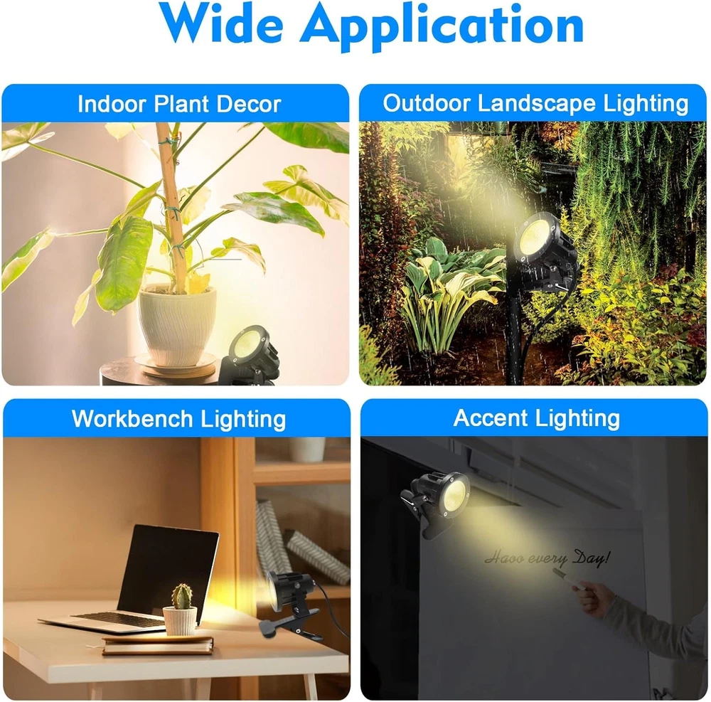 LED Spot Lights Plug in Outdoor Indoor Light 7W 3000K 6.6Ft Power Cord Waterproo