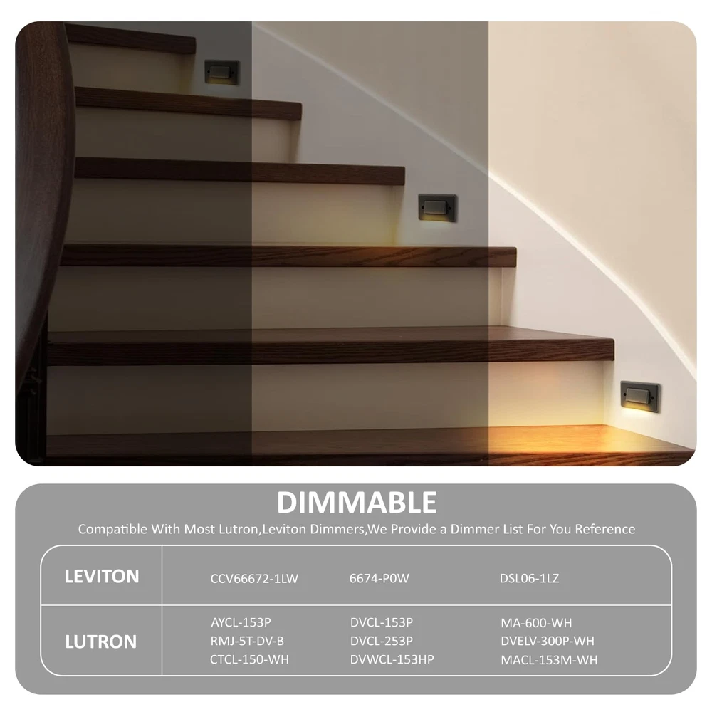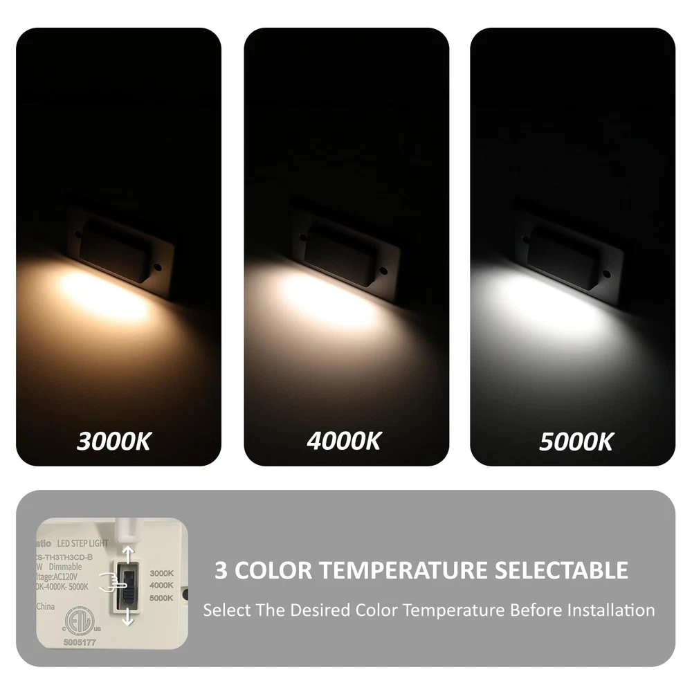 LED Step Lights Indoor Outdoor, 3W Outdoor Lights for Stairs Steps Decks, 120... 【3 Color Temperature】 : ZestPatio LED step lights indoor have 3 color options with the simple slide of a button on each light without disassembling the light (Set the color before installation), these stairway lights indoor project the light down and are just the right amount of lighting without glare, providing enough light for safety when using the stairs, these step lights have a memory function that retains the last set color 【Smooth Dimming】: ZestPatio LED lights for stairs are compatible with most dimmers, featuring a dimmable range of 5% to 100%. They provide smooth triac dimming without flickering and have a CRI of 90, ensuring truer colors 【Indoor and Outdoor Use】: ZestPatio outdoor lighting is designed for both indoor and outdoor use. These outdoor lights for stairs have sturdy aluminum construction, a silicon gasket, and an IP65 waterproof rating ensuring durability and reliability. These step lights outdoor are ideal for illuminating various areas, including stairways, pathways, driveways, decks and patios 【Simple to Install】: Our LED stair lights indoor have an AC 120V input voltage, installs easily in a standard gang box, cutting holes in the stucco wall or wooden wall to install this landscape lighting is easy. We suggest using the deepest possible electrical boxes so that you are cramming all your wires, wire nuts, and the unit itself, into the box (Note: Junction box is not included in the package) 【Outstanding Service】: ZestPatio is dedicated to delivering an exceptional customer service experience through the design and development of stairwell lighting. Our products are ETL-listed and FCC-listed, and we provide a 3-year warranty. If you are not completely satisfied with your purchase for any reason, please contact us for a quick and easy replacement The ZestPatio is a new brand, we are committed to continually offering you the most comprehensive professional LED lighting, all are designed and manufactured for optimum quality and performance. We will do that by relentlessly pursuing quality, ensuring continued innovation, always going one step further in our commitment to exceptional customer service. You, your family, and your guests will be delighted with the results. Product Description ZestPatio LED Step Lights Indoor Outdoor, 3W Outdoor Lights for Stairs Steps Decks, 120V Triac Dimmable, 3000K/4000K/5000K, IP65 Waterproof, ETL, Aluminum Brand: ZestPatio Working Voltage: AC 120V Power: 3W Effictive Flux: 150LM Dimmable: Triac Dimmer (5% - 100%) Color Temperature: 3CCT (3000K/4000K/5000K) Light Type: LED Waterproof: IP65 Lifespan: 30,000hrs Shipping We offer FREE shipping on all orders! We ship within Three business days of payment, usually sooner. We use a selection of shipping services such as UPS, FedEx, USPS etc. We only ship to the lower 48 states, no APO/FPO addresses or PO Boxes allowed. Local pickups and combined shipping options are not provided at this time. Return You can return a product for up to 30 days from the date you purchased it. Any product you return must be in the same condition you received it and in the original packaging. Please keep the receipt. Payment We accept payment by any of the following methods: PayPal Please pay as soon as possible after winning an auction, as that will allow us to post your item to you sooner! Feedback Customer satisfaction is very important to us. If you have any problem with your order, please contact us and we will do our best to make you satisfied. Contact Us If you have any queries, please contact us via ebay. We usually respond within 24 hours on weekdays. Please visit our eBay store to check out other items for sale! Thank you for shopping at our store.