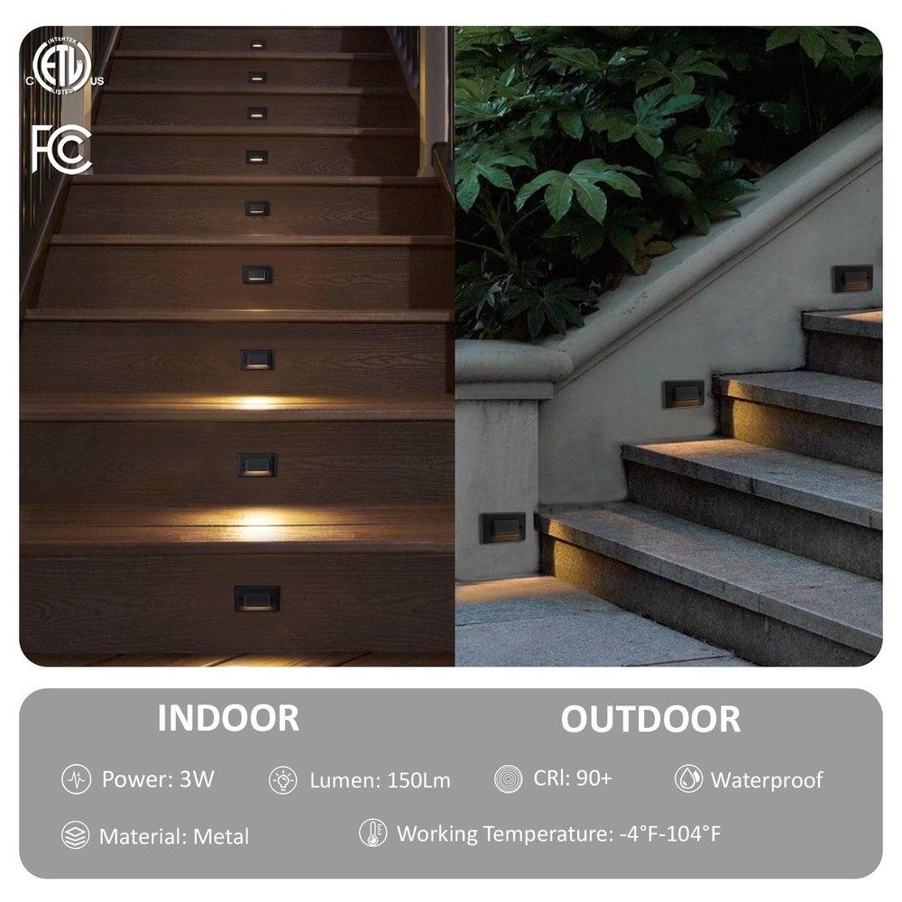 LED Step Lights Indoor Outdoor, 3W Outdoor Lights for Stairs Steps Decks, 120...