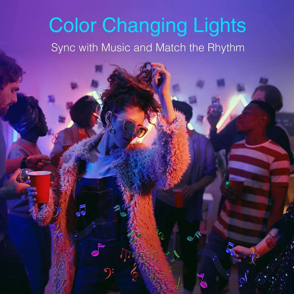 32ft(2Roll*16.4ft)Key LED Strip Lights, Flexible Strip Light SMD 5050 RGB 300 LEDs with Remote Controll, Multi-Color Changing Light Strips for Ceiling Bar Counter Cabinet Decoration About this item 【Multiple Choices LED Strip Light】: This RGB Led strip lights kit can change colors and speed automatically and periodically. It has not only RGB(Red, Green, Blue), 20 multicolored options, but also has DIY selection to create your great led mood lighting. 【Easy Installation and Use】: Led tape lights is cuttable between every 3 leds. You can cut off extra strips to adjust to a proper length. 3M self-adhesive tape can be fit on any dry and flat surface. Flexible to install anywhere you want. 【Connectable And Cuttable】: Strong sponge double-sided tape installation, super viscosity, just plug in all the parts and peel off the protective layer, then stick to the clean and flat surface. These light strips can be cut on all 3 LEDs along the cutting marks without damaging the rest. 【Safety LED Strip Lights】: This led strip light provide 12V/5A power supply no worry about prevent electric shock, short circuit etc, we promise it will provide a safety environment for your. 【Widely Application】: Low Power Consumption. The working voltage is 12V. Extremely low heat. It is touchable and safe to children. The strip lights are waterproof, can be used indoors or outdoors decoration. Ideal for TV, home, bar, shop, etc. 16.4ft smart light strip Hands-Free Voice Control: The smart LED strip light works with both Alexa and Google Home. With simple voice commands, frees up hands to turn on and off, change colors, or dim brightness Wireless App Control: The easy App_𝗚𝗼_𝘀𝘂𝗻𝗱 control provides convenient management over your led lights, have access to customized functions like 8 DIY scene modes and a daily sleeping timer and schedule. (Only Support 2.4GHz WiFi ) Sync to Music: The built-in mic allows the LED lights to sync to various dynamic music. Use the smart app to let your lights dance to music beats Timer and Schedule: Set a timer for the bedroom and living room LED light strip by your family's daily routine, manage the time to get up and sleep by lights on and off Easy to Install: Including 16.4Ft LED light with adapter and mounting clips. Please keep the surface clean and dry when attaching the steady and strong 3M adhesive of the strip light Light Source Type: LED Color: Rgb (Red, Green, Blue) Special Feature: Corded Connectivity Protocol: Wi-Fi-2.4GHZ Material: Copper Wattage: 12 watts Control Method: App Controller Type: App Control, Voice Control Item Weight: ‎7 ounces Package Dimensions: ‎6.5 x 5.43 x 1.26 inches Specific Uses: Indoor use only Light Direction: Adjustable