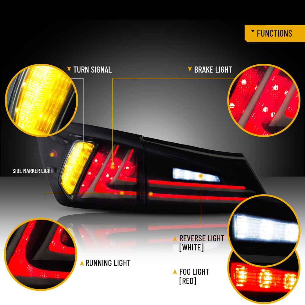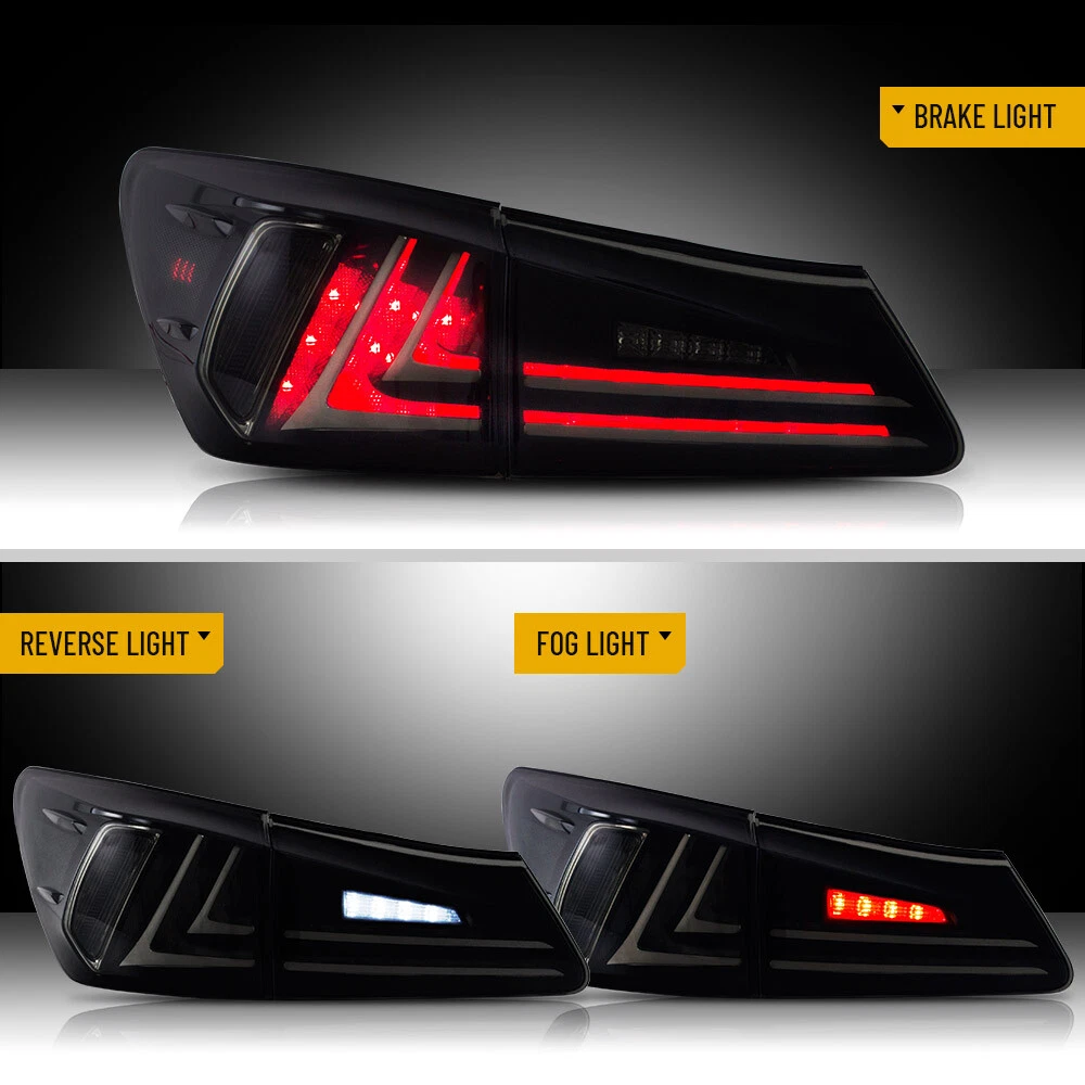 LED Tail Lights Assembly For Lexus IS250 IS350 ISF 2006-2013 Smoked Lens A Pair Part #: LX2804109, LX2805127, LX2805109 INCLUDES: (1) Front Taillight Assembly Right Passenger Side (1) Front Taillight Assembly Left Driver Side Fitment: Fit 2006-2012 Lexus IS250 IS350 & 2008-2014 Lexus IS200d IS F Not fit IS250C & Convertible (Professional Installation is Highly Recommended. ) Contact Us SHIPPING & RETURN WARRANTY Contact Us 100% satisfaction goal. If you have had less than 100% positive experience, please contact us, so we can work out a resolution. Your questions will be replied within 24 hours except the weekend and holiday. We will serve for you with all sincerity! SHIPPING & RETURN Shipping Information - Policy The goods will shipped by the eBay address, so please leave the right address on eBay Please, choose some local sellers, If you cannot wait patiently in the shipping time we declared. Once you purchase, please DON’T leave negative or neutral feedback if you haven't received item in 30 days, because we have mentioned the shipping time repeatedly. If you not satisfied with the goods please contact us before leave the feedback, we will try ourbest to satisfy you. Standard Order Processing time: W e'll update you when proceeding with your order from (Monday - Friday). Payment cleared/received on Friday will be shipped on the next business days (Monday or Tuesday). We are not responsible for carrier transit time. This information is provided by the carrier and excludes weekends and holidays. Note that transit times may vary, particularly during peak periods or in climate weather conditions, and that delivery times frames will need to be extended for any processing time frames in excess of 2-3 business days. WARRANTY Standard Replacement Specifically excluded from this warranty are failures caused by misuse, negligence, modification, abuse, improper application, installation or operation, or by unauthorized service or use of unauthorized parts in connection with the product and inadequate maintenance, normal wear and tear or normal consumption of the product. One time replacement Customers are responsible for the return shipping cost on warranty claims. We will refund you the money you paid for the parts less shipping and handling charges Please Note: - We also have more models available, please contact us if you can't find your specific model. - When products are noted in the description as out of stock, these products will then be offered as pre-sale items, normally they will be posted within 20 days from the date of cleared payment. - Item sold in a pair (left and right), bulbs may or may not be provided. On Dec 16, 2024 at 11:00:54 PST, seller added the following information: