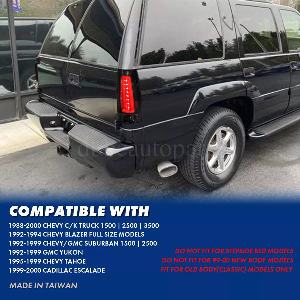 Store Categories Store Categories Parts for Benz Parts For Benz S-Class Parts For Benz C-Class Parts For Benz E-Class Parts For Audi Parts For Jeep Parts For Jeep Wrangler Parts For Honda Parts For Mazda Parts For Tesla Parts For Ford Parts For Volkswagen Parts For Freightliner Parts For Volvo Parts For Kenworth Parts for BMW E90/91 Parts for BMW Parts for Subaru Parts For Chevrolet Parts For Lexus Parts for BMW F10/F18 Parts For BMW E30 Parts For BMW E36 Parts For BMW E46 Parts For BMW E92/E93 Parts For BMW F30 Parts For BMW F32/F36 Parts For BMW F80 Parts For BMW G20 Parts For BMW E32 Parts For BMW E39 Parts For BMW E60 Parts For BMW E87 Parts For BMW F20 Parts For BMW F22 Parts For BMW F33 Parts For BMW X3/F25 Parts For BMW E71/70 Parts For Benz A-Class Parts For Benz B-Class Parts For Toyota Tacoma Parts For Toyota Camry Parts For Toyota Corolla Parts For Toyota RAV4 Parts For Toyota Highlander Parts For BMW G38 Parts For Toyota 86/Subaru Parts For BMW E70 Parts For Toyota CHR Parts for nissan Other Our Store Auction product Fixed Price Product Discount Product Hot Product LED Tail Lights For 1988-1998 Chevy GMC C/K 1500 2500 3500 Smoke Brake Lamps DOT 1988-1999 LED C Bar For Chevy/GMC C/K Silverado Tahoe Sierra Smoke Tail Lights Condition: NEW Fitment Type: Performance/Custom Bulb Included:yes Bulb Type: LED, Halogen Bulb Size: 3157 Bulb Certifications: DOT, SAE Position: Rear, Left, Right Fitment Note: Driver and Passenger Set Fits: 1988-1999 chevy/GMCC10,C1500/2500/3500,K1500/2500/3500 1988 -1999 Chevy silverado 1988-1999 GMC Sierra 1992 -1994 Chevy Blazer 1992-1999 Chevy/GMc suburban 1992-1999 GMC Yukon 1995 -1999 Chevy Tahoe 1999 2000 Cadillac Escalade Driver and Passenger Set Features: 1.High power LED provides great visibility both day and night time. 2.Direct Plug and Play made installation easy. 3.Improve Visibility 4.Enhance Safety and Vehicle Appearance 5.High durability new material with UV coating to protect harmful sun light while provide long lasting light output performance. 6.Long Lasting LED Parking Light Bar, LED Brake & Turn Signal Light. 7.Complete set includes Left (Driver Side) and Right (Passenger Side). 8.High Quality Headlights made by latest process with advanced materials that meet or exceed strict Original requirements. 9.Easy install direct Original Equipment Replacement. payment shipping Returns Warranty About US payment PAYPAL Only Buyer must pay using PAYPAL ONLY within 7 days We use PayPal address as default shipping address, please make sure the address on PayPal is correct and also contact number MUST be provided. Please leave note for your special request (e.g. Colors or Size) in ebay note when you pay the order. from the date of transaction made. Full Payment Transaction with insufficient payment will not be handled. So, please make you complete the full payment, including Final price + Postage. No Discount No discount is offered for all transactions. Processing We will arrange the dispatch within two working days after we receive the valid and completed payment. shipping Delivery address on ebay Please advice shipping detail from ebay when you make payment(inclue telphone number,contact person,Input voltage,color etc..). Postage includes the actual postage and corresponding packaging fee and handling fee,which is coincident with ebay's regulations. Any doubts, please read the ebay's regulations carefully. We don't overcharge the cost. Please don't bargain or argue with us for this point. Returns Within 30 days of receipt of your order, you may return auto parts that: Are in their original packaging Have not been used, installed or disassembled Are not damaged due to improper installation Do not have missing parts, hardware or instructions we will We will issue a full refund for any returned auto parts when your return meets the above requirements. Our warehouse is in California,you can return the item there.If you are Warranty we will We will issue a full refund for any returned auto parts when your return meets the above requirements. Our warehouse is in California,you can return the item there.If you are If your order has been received and it is not what you ordered, or if your item has a manufacturer defect, please contact us within 7 days from delivery date. And you must contact us to request an Return Merchandise Authorization Number (RMA). No return package will be accepted without a valid RMA number. All products are covered by our warranty against defects. If an item proves to be defective, please contact us to have the product repaired or replaced. All of our products are covered by a 6-months warranty. About US Welcome to dbbcautoparts's eBay store 1. We focus on auto parts and are the largest industry distributor of affordable quality products. We have the largest inventory and have been continuously selling on eBay for ten years. You can learn from our feedback that we have been doing this for many years and have the expertise to meet your various needs. 2.With over 10years of experience in the aftermarket car parts industry, we continue to bring you, the customers, the best products possible. Our customer service is the best in the industry, so please message us through eBay if you have any questions at all. 3. Your feedback is very important to us. If you cannot leave us a "five-star" rating and positive feedback, please do not hesitate to contact us before leaving feedback. We are eager to cooperate with customers. We believe in communication. Give us a call or send us an email and we will prepare your buyers. 4.Customer satisfaction is our top goal, so please feel free to communicate with us if there is any problem. 5.Email will be reply within 48 hours, so please be patient due to the jet-lag. If you intend to leave us negative feedback, please DO contact us first and we will see what we can do for you. 6.Please contact us first if you have any problems/questions/concerns. We will be happy to resolve any issues you may have in a