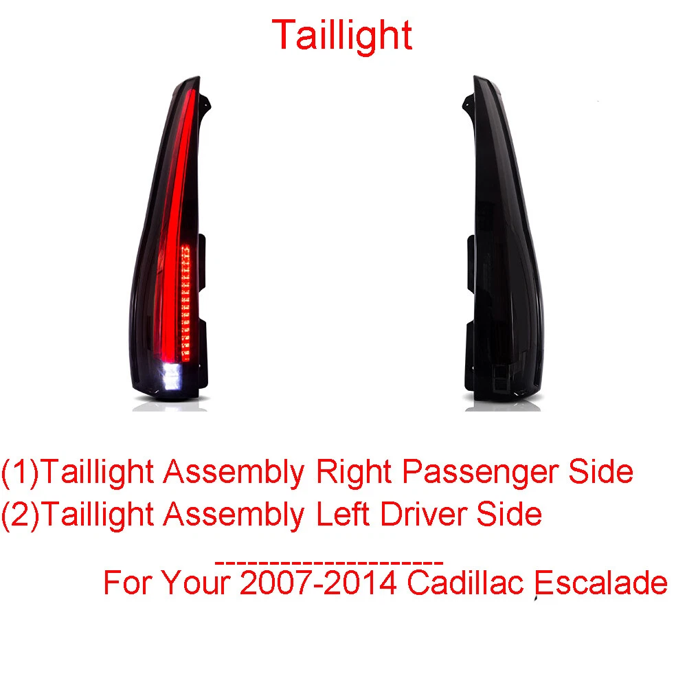 LED Tail Lights For 2007-2014 Cadillac Escalade/ESV Rear Brake Lamp Assembly Part #: GM2800232, GM2801232 INCLUDES: (1) Tail Light Assembly Halogen Left Driver Side (1) Tail Light Assembly Halogen Right Passenger Side VEHICLE APPLICATION SHIPPING & RETURN WARRANTY VEHICLE APPLICATION Fitment 2007-2014 Cadillac Escalade, Escalade ESV Not Fit 2007-2013 Escalade EXT And GMC Yukon & Chevrolet Tahoe, Suburban SHIPPING & RETURN Shipping Information - Policy The goods will shipped by the eBay address, so please leave the right address on eBay Please, choose some local sellers, If you cannot wait patiently in the shipping time we declared. Once you purchase, please DON’T leave negative or neutral feedback if you haven't received item in 30 days, because we have mentioned the shipping time repeatedly. If you not satisfied with the goods please contact us before leave the feedback, we will try ourbest to satisfy you. Standard Order Processing time: W e'll update you when proceeding with your order from (Monday - Friday). Payment cleared/received on Friday will be shipped on the next business days (Monday or Tuesday). We are not responsible for carrier transit time. This information is provided by the carrier and excludes weekends and holidays. Note that transit times may vary, particularly during peak periods or in climate weather conditions, and that delivery times frames will need to be extended for any processing time frames in excess of 2-3 business days. WARRANTY Standard Replacement Specifically excluded from this warranty are failures caused by misuse, negligence, modification, abuse, improper application, installation or operation, or by unauthorized service or use of unauthorized parts in connection with the product and inadequate maintenance, normal wear and tear or normal consumption of the product. One time replacement Customers are responsible for the return shipping cost on warranty claims. We will refund you the money you paid for the parts less shipping and handling charges Please Note: - We also have more models available, please contact us if you can't find your specific model. - When products are noted in the description as out of stock, these products will then be offered as pre-sale items, normally they will be posted within 20 days from the date of cleared payment. - Item sold in a pair (left and right), bulbs may or may not be provided. On Dec 5, 2024 at 02:09:55 PST, seller added the following information: