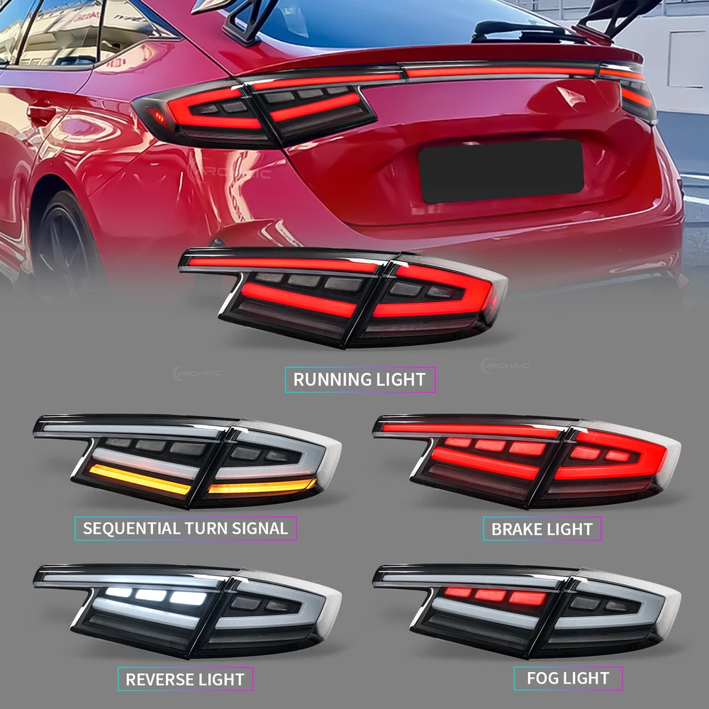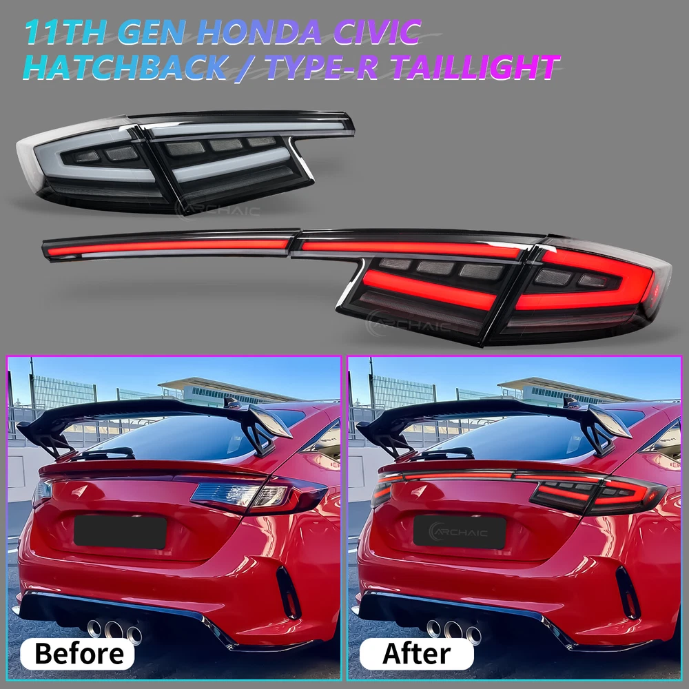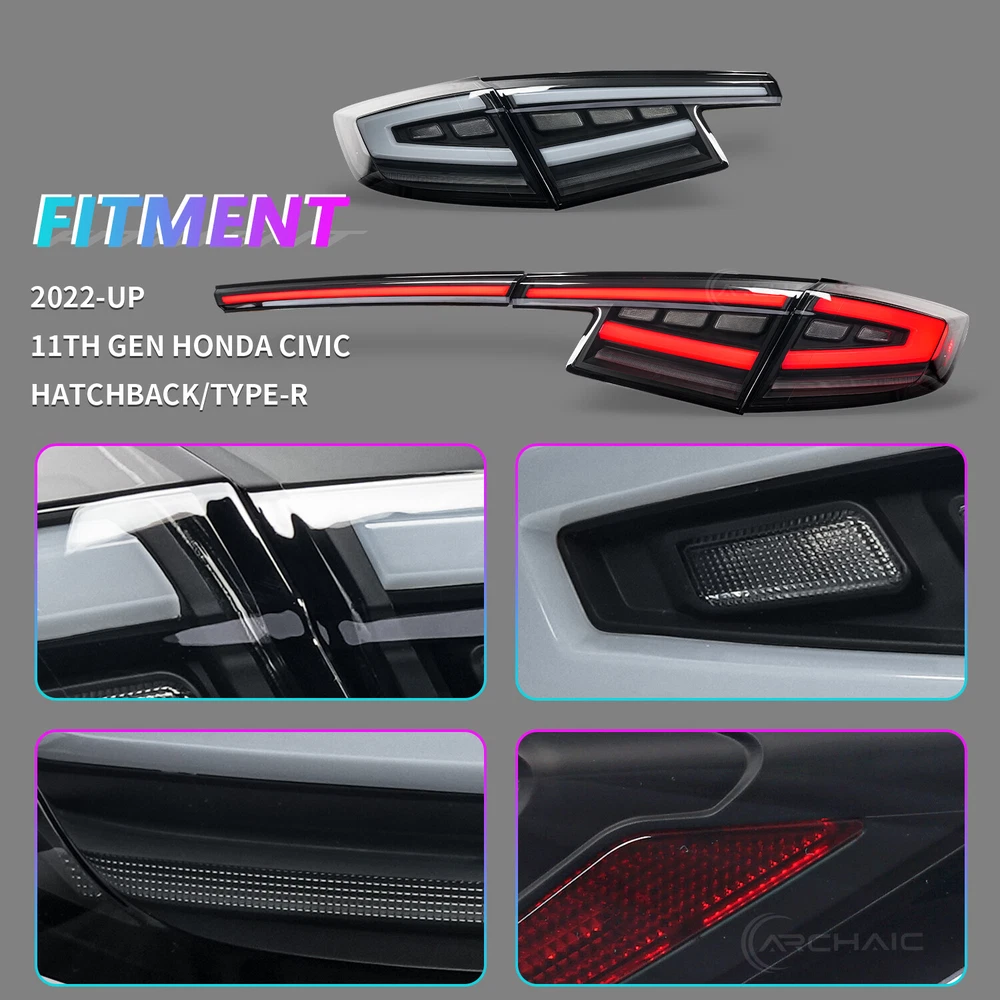 Compatibility: Fit for 2022 2023 2024 2025 Honda Civic Hatchback/Type R OEM: 33500T47A01,33550T47A01 Specifications: Brand:archaic Material:ABS/PC Bulbs Type: LED Chips(No need bulbs) Lens Color:Clear Features: 【 Sequential Turn】Rear lamps use dynamic sequential turning light,make other knows your movement more clearly. 【Start Animation】Tail lamps have the dynamic animation when you starting your car, refresh the look of your car. 【High Quality】Tail lights pass the IP68,waterproof and dust-proof test. What's included: 1.A complete set of tail lights (left, right, trunk light) 2.Required wiring harness Warm Tips: If you have any problems during installation or work of the lights, please feel free to contact us. LED Tail Lights w/Trunk Lamp Fit for 2022-2025 Honda Civic Hatchback/Type R Compatibility: Fit for 2022 2023 2024 2025 Honda Civic Hatchback/Type R OEM: 33500T47A01,33550T47A01 Specifications: Brand:archaic Material:ABS/PC Bulbs Type: LED Chips(No need bulbs) Lens Color:Clear Features: 【 Sequential Turn】Rear lamps use dynamic sequential turning light,make other knows your movement more clearly. 【Start Animation】Tail lamps have the dynamic animation when you starting your car, refresh the look of your car. 【High Quality】Tail lights pass the IP68,waterproof and dust-proof test. What's included: 1.A complete set of tail lights (left, right, trunk light) 2.Required wiring harness Warm Tips: If you have any problems during installation or work of the lights, please feel free to contact us. If you can provide videos or pictures, the problem will be solved more efficiently. During this warranty period, our customer service staff will fully cooperate to solve the problems encountered by customers. Shipping Return Warranty After-Sales Contact us Shipping Handling time: 1-3 day Shipping Cost : Free to US Shipping time: Business days in USA All the items will be dispatched via UPS/FedEx/USPS. Return If you are not satisfied with the item after receiving the item, contact us within 7 days, we will try best to serve you; Usually we will cover the shipping except in individual cases; Returns allowed for 30 days on unwanted items; Item must be unused and unopened; Return postage to be borne by buyer if you used the item or demaged it; Damaged or Faulty Items - please inform us on receipt and we can arrange for replacements/returns/refunds on an individual basis; This does not affect your statutory rights. Warranty Warranty after receiving; Buyers pay return and replacement shipping cost; We will not refund any labor cost; After-Sales If it happens that the lights get moisture after you install them on your car, it would be normal for first time using. You just need to keep using for a period of days, the moisture will disappear. because there is inner air cycling in the lights as we design. As for headlights, you can also open the cover of low/high beam so that the moisture will out more quickly. If the moisture still exist, please feel free to send us message for help, we will try our best to help you. After you install, if you find that there have function does not work, please check if the harness is connected correctly, and exchange the left and right , If it still does not work, please rember take some photos or videos, please feel free to contact us. Contact us Any question will be replied within 24 hours except the weekend and holiday. Please contact us by email before opening return, we will try our best to help you. On Jan 12, 2025 at 20:07:44 PST, seller added the following information: