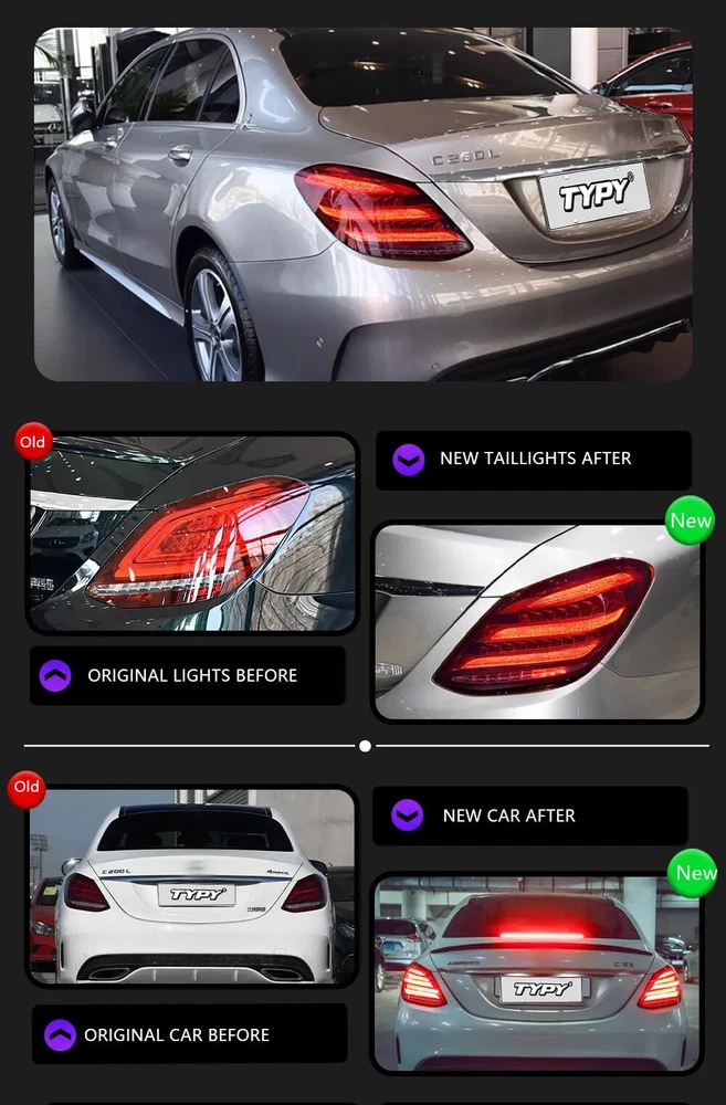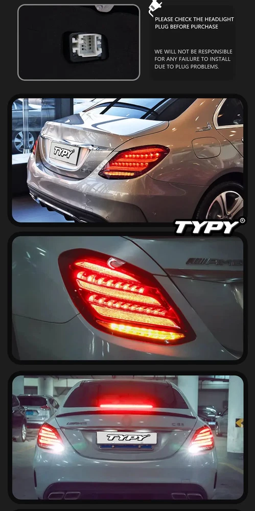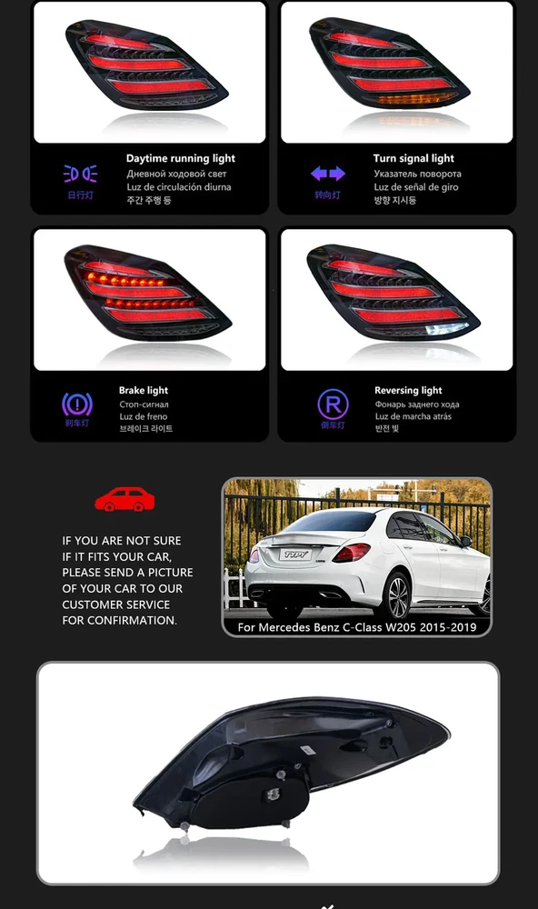 These LED taillights are a fantastic upgrade for the W205 C-Class! The fitment is perfect, just like OEM, and the modern look instantly elevates the rear end. Bright, crisp lighting with smooth turn signals—no errors or flickering. Installation was straightforward, and the build quality feels premium. Highly recommend for anyone wanting a sleek, updated style!