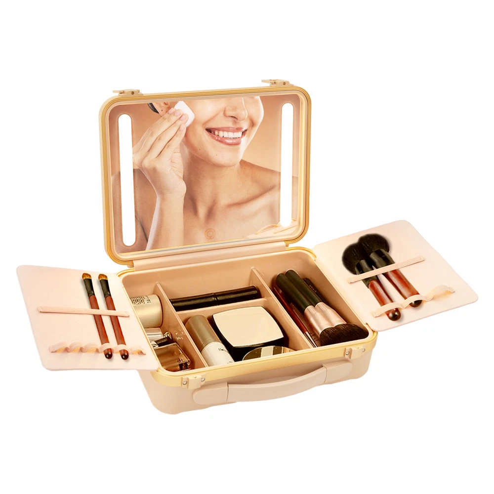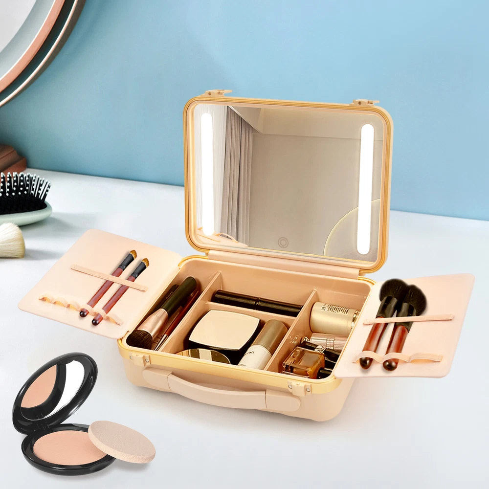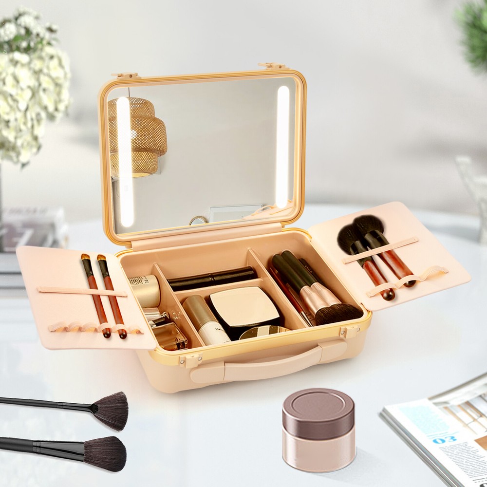 This makeup case is a game-changer! The LED mirror gives perfect lighting, and the three color options are so handy. It fits all my essentials neatly, and the sturdy design feels premium. The battery lasts long, and charging is quick—super convenient for travel. Love the sleek pink look and how spacious it is without being bulky. Definitely worth it!