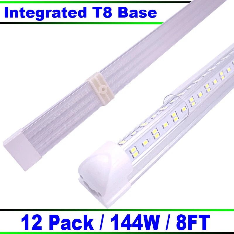 FAST DELIVERY - Ship from New Jersey or Los Angeles Warehouse via FedEx , 3-7 Days Delivered Your Door . SCIENTIFIC DESIGN - 8Ft LED Shop Lights Fixture is Made of 6500K Cold White SMD2835 LED Chip ,Plastic Clear Cover , Aluminum Bracket Housing ,and AC85-277V Constant Current Driver . It can work in -68F to 120F Temperature Conditions EASY INSTALLATION - The Integrated Tube Fixture Can be Install on Wall or Ceiling ,Easily Replace Traditional Fluorescent Tube Bulb . Plug and Play , Free Accessories (Power Cords, Connector , Extension Cords , Clip and Screw ) Come with Tube Lights Together WIDE APPLICATION - Linkable 8Ft Bulbs Widely Used in Garage Ceiling , Barbershop , Schools, Hospitals Basement , Factory Warehouses , Supermarkets Cooler Door , Offices, Shops,Hotels, etc LED Tube Lights V-shaped 8Ft Bar Lamp Integrated Fixture LED Shop Light 144w FAST DELIVERY - Ship from New Jersey or Los Angeles Warehouse via FedEx , 3-7 Days Delivered Your Door . SCIENTIFIC DESIGN - 8Ft LED Shop Lights Fixture is Made of 6500K Cold White SMD2835 LED Chip ,Plastic Clear Cover , Aluminum Bracket Housing ,and AC85-277V Constant Current Driver . It can work in -68F to 120F Temperature Conditions EASY INSTALLATION - The Integrated Tube Fixture Can be Install on Wall or Ceiling ,Easily Replace Traditional Fluorescent Tube Bulb . Plug and Play , Free Accessories (Power Cords, Connector , Extension Cords , Clip and Screw ) Come with Tube Lights Together WIDE APPLICATION - Linkable 8Ft Bulbs Widely Used in Garage Ceiling , Barbershop , Schools, Hospitals Basement , Factory Warehouses , Supermarkets Cooler Door , Offices, Shops,Hotels, etc