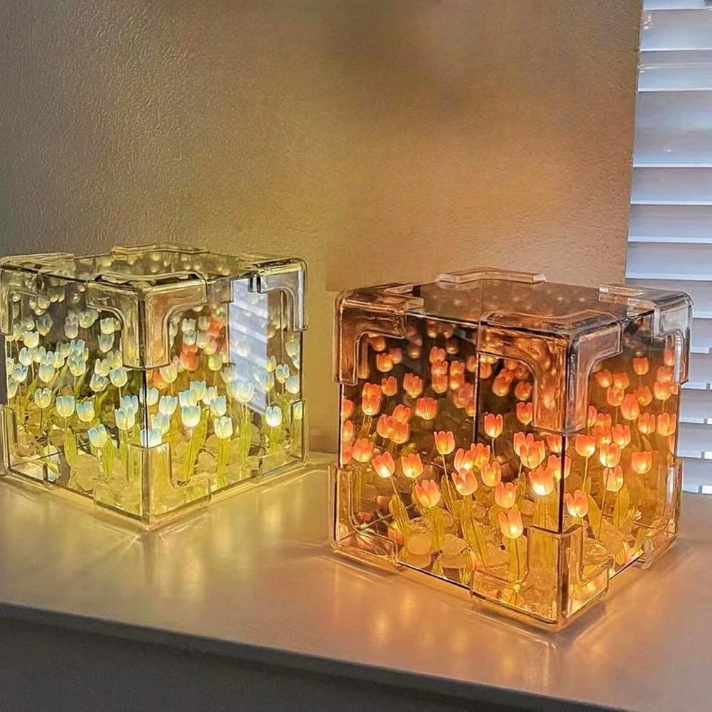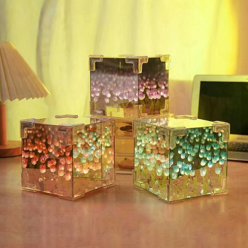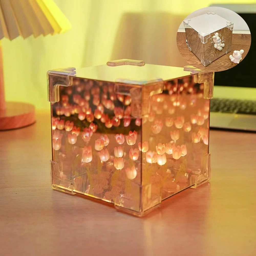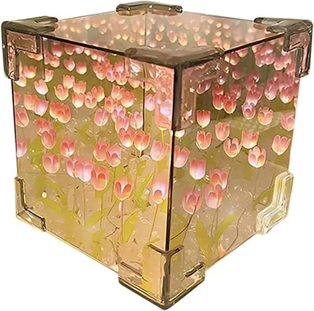 The LED Tulip Mirror Lamp is a USB rechargeable night light designed for bedroom use. This pink lamp functions as both a sleeping light and decorative decoration, providing a soft atmosphere in the room. The touch switch allows for easy operation, while the energy-efficient LED lighting technology ensures long-lasting use. With dimensions of 1" x 1" x 1" and a weight of 4.6 ounces, this lamp is perfect for adding a cozy ambiance to any bedroom space or used as a gift for loved ones. Captivating Blooms: This cloud tulip lamp transforms any space into a mesmerizing sea of flowers, immersing you in a world of tranquility and beauty with its double-sided mirror design and LED illumination. Dual Enchantment: A true masterpiece of design, this lamp serves as an elegant mirror when turned off, and unveils a breathtaking display of tulips when illuminated, combining functionality and artistic flair. Enduring Radiance: Crafted with energy-efficient LED technology and high-quality materials, this tulip lamp promises a long-lasting glow, featuring 20 vibrant flowers and a sturdy glass construction. Versatile Ambiance: More than just a sleep aid, this lamp creates a warm, inviting atmosphere, making it a versatile addition to any bedroom, living space, or special occasion as a decorative centerpiece or reflective mirror. Thoughtful Gifting: With its captivating design and meaningful symbolism, this tulip lamp makes an ideal gift for loved ones, commemorating special moments like birthdays, holidays, or simply expressing affection for friends and family.