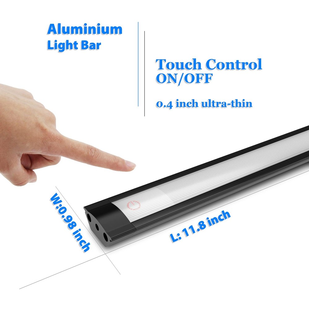 If you’ve bought some cheap LED lights, You may have meet these problems , These Light bar have short lifespan , touch sensor is very dull you need to touch it many times ,installation is difficult and look terrible , Uneven distribution of light is very uncomfortable . You are angry to pull them down and throw it in the trash , You will find that it waste your money. That you really need is a high quality LED under cabinet lighting. So choose us . Add To Cart Now Advantage: 1.Touch Control: Switching on/off of lighting are controlled by figure touch , easy operation and more smarter. 2.More Energy Saving: The LED light bar is 213 lm, Only 3.5W. Very energy-saving and environmentally friendly . 3.Simple Installation: Install in few seconds by yourself. All installation accessories included. no damage to your cabinet . 4.High Quality LED Strip: Integrated design , using aluminum profile to cover the under counter lights , softer light with no glare , Natural warm white 3000k. Specifications: -Size:L300*W24.5*H10MM -Pack:1PCS -Input Valtage:AC100-240V -Power:3.5W -Lumens:213lm -CCT:3000K -CRI:>80 Package Include: -1*LED Aluminium Light Bar BR1 -1*Power Supply -1*Using Manual -1*Accessory Package (Include : 2 * Buckle / 2 * Adhesive Tape / 2 * Screws) Tips: -Please keep the installing place dry , clean and smooth . -Please don’t install it on the metal surface. -Please don’t install it in sealed space to keep the long lifespan Note : When you test the product , Please don’t hold the whole LED light bar , you can put it on your table (Please avoid metal surface or static electricity problem) and just use one finger to touch the surface of aluminum , and then you can control the switch. Touch Cabinet Lights: Enjoy effortless control with a simple touch at the marked activation point. These cabinet light bars are designed for quick and easy operation, making lighting adjustments a breeze. Durable: The aluminum frame ensures good heat dissipation. Equipped with branded LED chips, they provide high-brightness, glare-free light. Safe to touch and designed to ensure a long lifespan. Soft Light: Featuring bright warm white 3000K light, gentle on the eyes. The under-counter light delivers 213 lumens, providing ample brightness while being perfect for your kitchen cabinets, garage, shelf areas, closets, stairs, and more. Easy Installation: Installation takes just a few seconds. You can choose between adhesive stickers or screws based on your needs. No damage to your furniture. Small and Simple: There is no complicated design here—just a simple and durable light bar. The light bar is small yet bright. When you need to hide the installation or punch holes to pass through certain lines, a compact design is ideal.