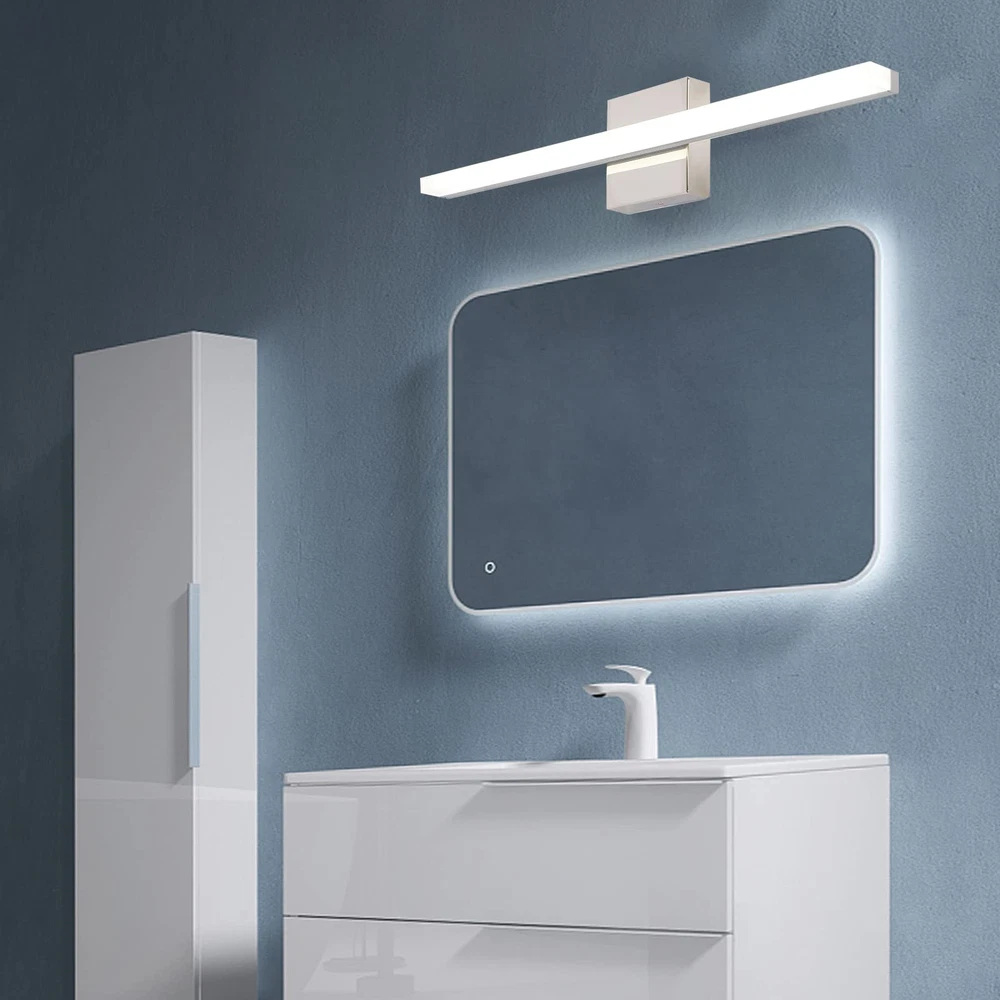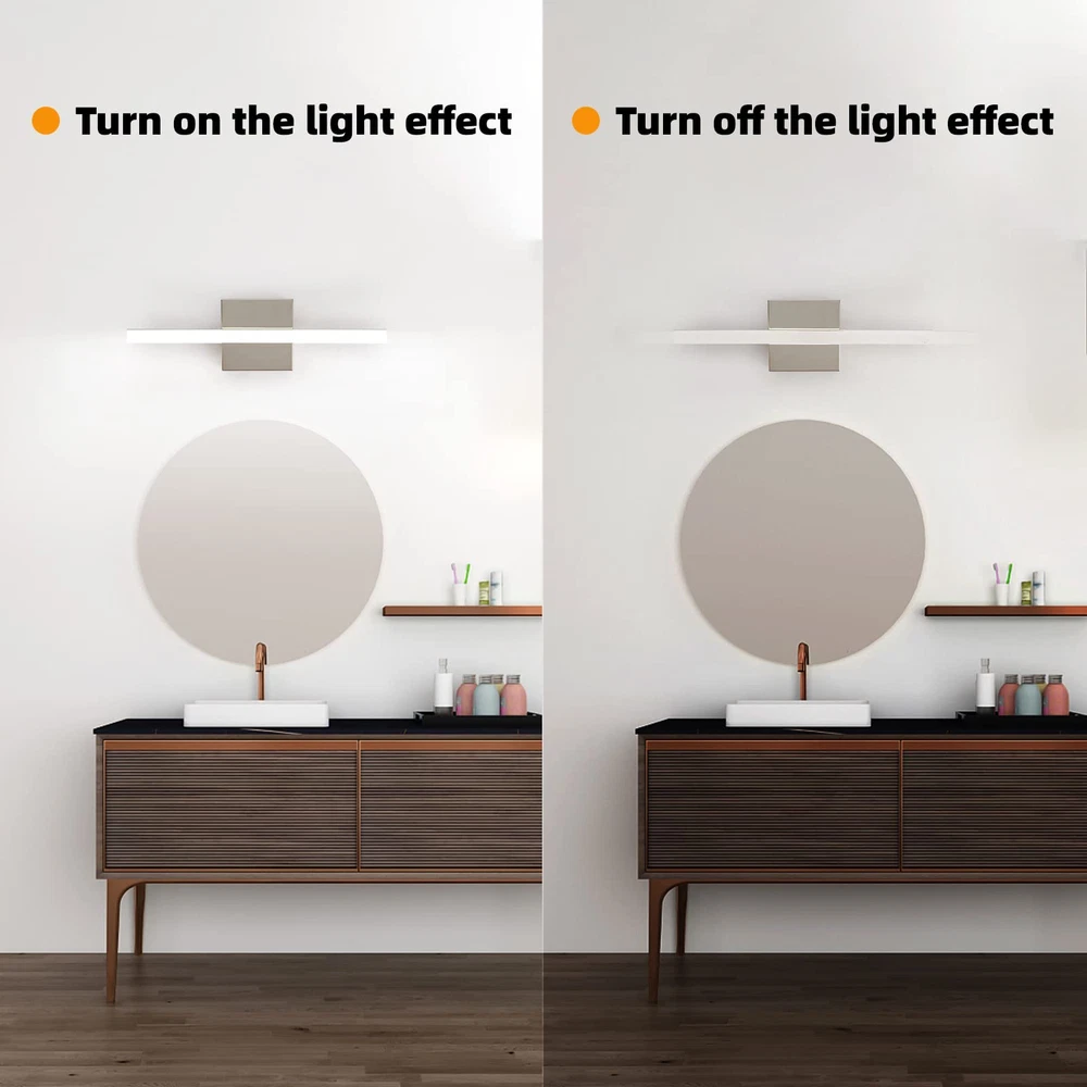 [HUMANIZE DESIGN]: The bathroom light fixture provides more luminous angle, larger coverage area.Supply your demand for any light angle.Comfortable light protect your eyes. [MEASUREMENTS & BULB]: Specification of 9W bathroom lighting fixtures over mirror : 16"W / 4.33"H / 1.18"D. The bathroom led light include LED light source inside.Able to provide more brightness than ordinary 120W bulbs while It consumes 9W. [EASY TO INSTALL]: Hardwired (installation required), no switch or plug on the fixture. With USA standard mounting plate, the led lights for bathroom is easy to mounted it on the junction box. Just connect correctly and directly to the reserved wire. [HIGH QUALITY MATERIAL]: Our vanity mirror lights are made of Stainless Steel and matte white acrylic shade. No need to worry about getting oxidation and color fading. [QUALITY CUSTOMER SERVICE]: If you have any questions about our products, please contact our professional service team via Amazon message box. Our customer service will solve your problem within 24 hours, and we will try our best to improve your shopping experience.