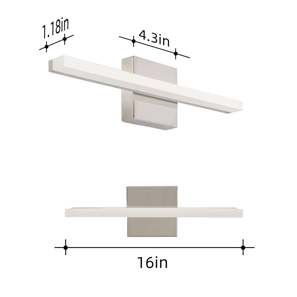 LED Vanity Lights Bathroom 1 Pack 16IN 9W Daylight White Chrome Dimmable Bathroo