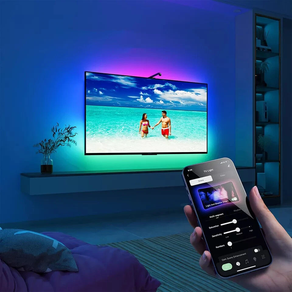 Features: -Equipped with the latest smart camera, it can synchronize the colors on the screen and react to sound and light, providing amazing lighting effects to create a more immersive and enjoyable viewing experience. (Note: the camera cannot be used to take pictures.) -With the Bluetooth ''uLamp'' app, you can effortlessly adjust brightness, colour, set time, and even DIY multiple scenes to suit your mood, and it also comes with a remote control. -It can display 16 million colors, and the soft lighting protects your eyes and immerses you in a unique atmosphere. Welcome to our store TV LED Backlight with Camera AR Sensor for 55-60" PC Music Sync LED Strip Lights Features: -Equipped with the latest smart camera, it can synchronize the colors on the screen and react to sound and light, providing amazing lighting effects to create a more immersive and enjoyable viewing experience. (Note: the camera cannot be used to take pictures.) -With the Bluetooth ''uLamp'' app, you can effortlessly adjust brightness, colour, set time, and even DIY multiple scenes to suit your mood, and it also comes with a remote control. -It can display 16 million colors, and the soft lighting protects your eyes and immerses you in a unique atmosphere. -It provides 12 scene modes, 6 music rhythm modes (rock, jazz, classical, scroll, energy, spectrum) and DIY scene mode to customize it according to your preferences and create the perfect atmosphere for any occasion. -It combines functionality, beauty and entertainment, making it a thoughtful gift for movie lovers, game lovers, friends, family or yourself. -Installation is quick and easy, 3.8m/12.84ft long, suitable for 55-60" TV, equipped with strong adhesive, just install the camera in the center of the top of the TV, and then install the LED light strip firmly on the back of the TV. Before installation, please make sure the back and top of the TV are dust-free so that the camera and light strip are more stable and not easy to fall off. Specification: Model: DX23014 Lamp body material: FPC LED type: 5050RGB LED quantity: 114 Input voltage/frequency: AC 100-240V/50-60Hz Input voltage/current: 12V/1.5A max Power: max 18W Lighting angle: 120° Control method: 24-key 2.4G wireless remote control, mobile phone Bluetooth app Size: 3800*10*1.8mm Package Included: 1x Light strip (3.8m) 1x Color sensor 1x Controller 1x Remote control 1x Instruction manual 1x US power adapter Item Specifics Amperage 12V/1.5A max Brand Bedee Model DX23014 Colour Multicoloured Control Style App Control Remote Control Cord Colour Black Department Adults Features Colour-Changing Dimmable Easy Installation Low Voltage RGB With Light With Remote Control Installation Area Indoor LED Chip Code 5050RGB Lighting Technology LED Material FPC Occasion Multipurpose Output Voltage AC 100-240V/50-60Hz Power Consumption max 18W Power Source USB Room Bedroom Dining Room Living Room Lounge Playroom Style Modern Theme Movies & Music Art Celebrity Halloween Holiday Holidays & Christmas Home & Garden TV Type Light Strip Voltage 12 V Lighting angle 120° Compatible Model TV background light Manufacturer Warranty 5 Years Compatible Brand Suitable for 55-60 inch TV Payment We accept all forms of payment . Payment is expected within 2 days from the end of the auction. We send all the items are based on your paypal address. Therefore, please make sure your paypal address is valid. Shipping Handling time: 1 business day (Orders are not processed on weekends & holidays) Tracking information will be sent once item is shipped. Local pick-up is unavailable at the moment. For international shipping and shipping to Guam, Hawaii and Alaska, Please contact us before placing the order. Item is shipped to ebay address. Leaving correct address can minimize delay. Returns If you are satisfied with the purchase and our total service, your comment is very important in our business success. Please take a minute to leave us a positive feedback with an overall Detailed Selling Rating (DSR) of 5. Our eBay account setup auto feedback, so eBay system gives you automatically Positive feedback back after your positive feedback left. If you plan to give us a neutral/negative feedback Or open ebay/paypal case, please write to us immediately so that we can do our best to resolve your problem. Contact Us All messages will be answered within 24 office hours. Please contact us either by clicking "contact seller" in the "purchase history" section or simply click "ask a question" at the bottom of this page. If you are unsatisfied with our item or service, please contact us before leaving any feedback. We are committed to resolve all issues in a friendly and satisfactory manner. We always reply to messages within 2 business days (off-duty at weekend). If you do not get a response from us, then please check your junk or spam mailbox. Location Los Angeles,United States Please always talk to us via ebay Message. We appreciate your business and look forward to growing our e-Bay sales with satisfied customers. Welcome to our store DESCRIPTION PAYMENT SHIPPING RETURN POLICY CONTACT US TV LED Backlight with Camera AR Sensor for 55-60" PC Music Sync LED Strip Lights Features: -Equipped with the latest smart camera, it can synchronize the colors on the screen and react to sound and light, providing amazing lighting effects to create a more immersive and enjoyable viewing experience. (Note: the camera cannot be used to take pictures.) -With the Bluetooth ''uLamp'' app, you can effortlessly adjust brightness, colour, set time, and even DIY multiple scenes to suit your mood, and it also comes with a remote control. -It can display 16 million colors, and the soft lighting protects your eyes and immerses you in a unique atmosphere. -It provides 12 scene modes, 6 music rhythm modes (rock, jazz, classical, scroll, energy, spectrum) and DIY scene mode to customize it according to your preferences and create the perfect atmosphere for any occasion. -It combines functi
