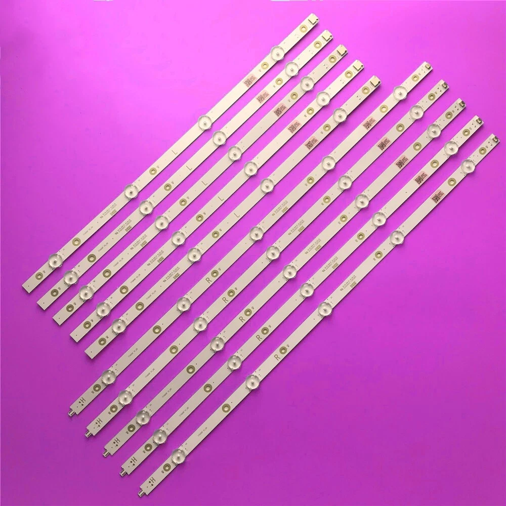 100% working condition.We test the led strip before shipment ,so you can buy with confidence. Many TV models use various different sets of LED strips. Please match the strips shown in the photo to the originals in your TV before ordering. Product information: Condition: Brand NEW Size (Length): 992mm R+L Number of LED beads: R+L=9LED(3V) per strip Package include: 10pcs/set (5*R 5*L) LED strip models: 210BZ05DRB3030K01L 210BZ04DLB3030K01L LB49021 V0 LB49023 V1 TVOD3044312M-R-YL TVOD3044312M-L-YL TT4906F V0 TT4906F V1 Compatible TV Models: For Philips 49PUS7503/12 49PUS6412 49PUS6162 49PUS6803