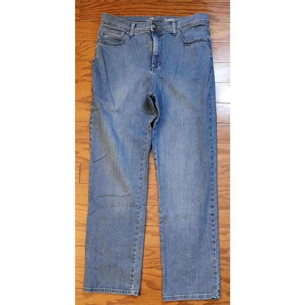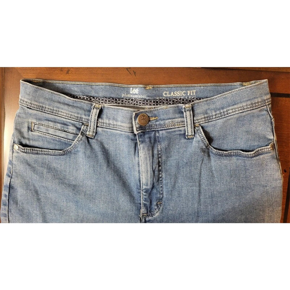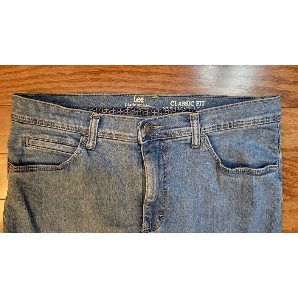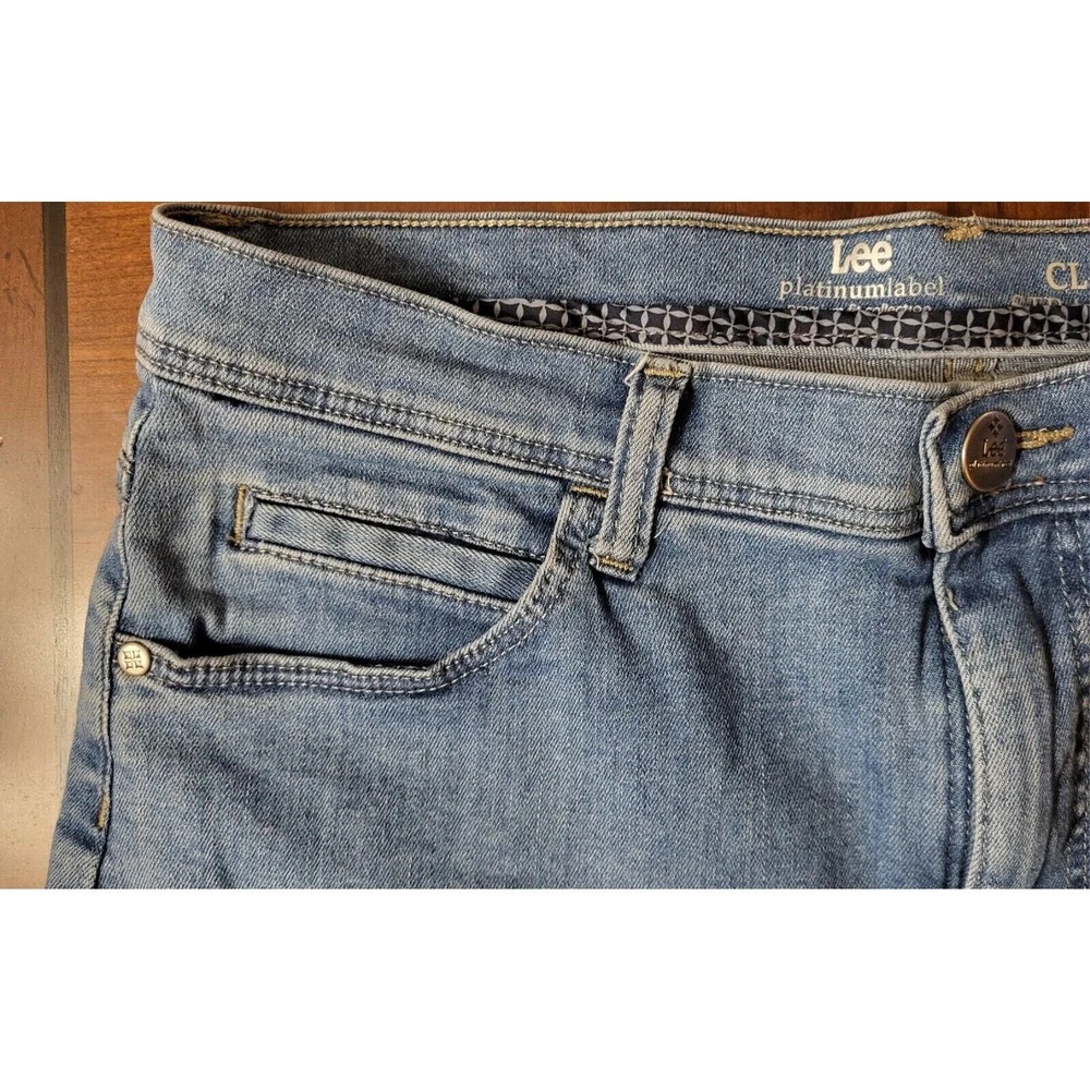 Elevate your denim game with these LEE Platinum Label Classic Fit straight leg jeans. The timeless blue color and solid pattern make them a versatile addition to any wardrobe. The 5-pocket design with button and zip closure offers both style and functionality. Crafted from high-quality denim fabric with added stretch for comfort, these jeans are perfect for all seasons. The mid-rise waist and 30.5 inch inseam provide a flattering fit for women's size 12. The fringe, button, and zipper accents add a touch of retro vibe to the 80s-inspired theme. Waist measures 30 inches Inseam measures 30.5 inches Excellent pre-owned condition. No rips or tears. The zipper and button function properly. Add these to your wardrobe today!