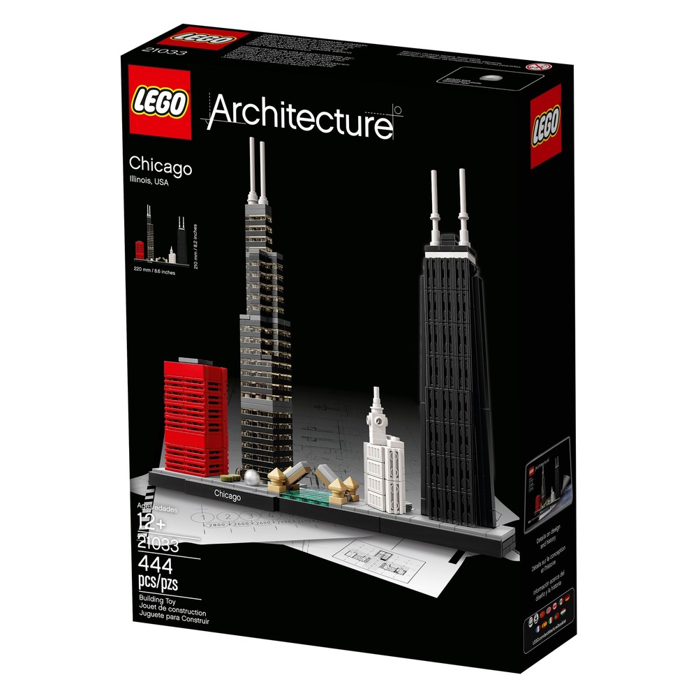 LEGO Theme:LEGO ARCHITECTUREMPN:21033LEGO Set Name:ChicagoAge Level:12+Country/Region of Manufacture:MexicoRelease Year:2017Number of Pieces:444UPC:0673419264402_desc_:Capture the architectural essence of Chicago with this magnificent set that brings together the iconic Willis Tower John Hancock Center Cloud Gate DuSable Bridge Wrigley Building and the Big Red in an inspirational skyline setting. Each individual LEGO structure provides a unique and rewarding building experience with true-to-life color and relative scale depiction. The Chicago River is also represented in the tiled baseplate adding an extra dimension and feel of authenticity to this wonderful model that focuses on the amazing architectural diversity of one of the world's most beautiful cities.Item Height:11.02 ingtin13:0673419264402LEGO Set Number:21033Item Weight:4.25 lbsItem Length:8.11 inItem Width:7.83 inBrand:LEGOLaunch Date:01/01/2017