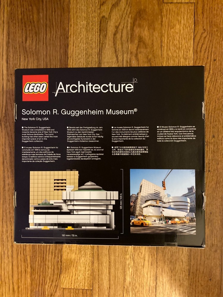 Brand:LEGOLEGO Set Number:21035gtin13:0673419264426UPC:5702015865340, 0673419264426Release Year:2017Launch Date:4/2/2017MPN:21035Item Length:11.1 inItem Width:10.3 inAge Level:12+Item Height:3.8 inNumber of Pieces:744LEGO Theme:LEGO ARCHITECTURELEGO Set Name:Solomon R. Guggenheim Museum