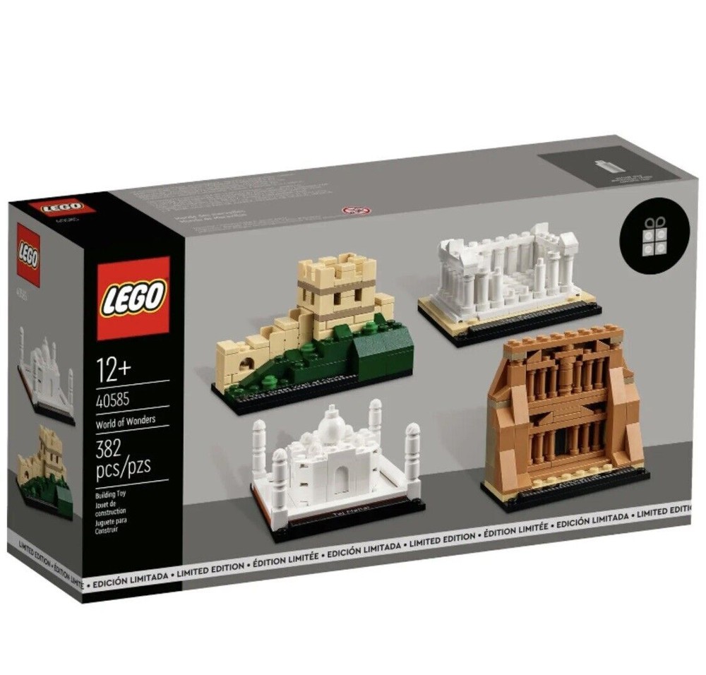 From Lego.com: Pay tribute to 4 of the world’s most famous and celebrated sites as you assemble the details of this World of Wonders (40585) set. The set includes LEGO® brick-built versions of the Taj Mahal, the Great Wall of China, the Parthenon and Petra’s Al-Khazneh. Each model includes a display plate with a name sticker, and the set makes a great gift idea for travel or history buffs aged 12 and up – as well as teens and adults. Place the model on display to create a talking point in the home or office. ***ATTENTION BUYERS PLEASE READ*** This set is used and assembled. If you wish for me to ship it assembled please let me know at the time of purchase. Otherwise I will disassemble moving backwards through the instructions making numbered bags in order to create an organized, fun building process