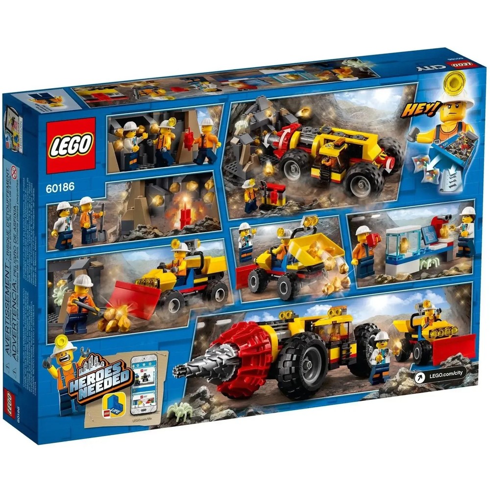 LEGO [City] - Mining Heavy Driller Building Set - Mining Series (60186) Condition: New Dig deep into adventure with the LEGO [City] Mining Heavy Driller Building Set! This action-packed set lets young explorers take charge of a powerful drilling machine, ready to uncover valuable golden nuggets hidden within the mine cave. With its rotating drill bit, the heavy driller is designed to break through rock, while the shovel loader helps transport the treasure to the mobile lab for analysis. Aspiring geologists and miners will enjoy hours of imaginative play as they dig, haul, and examine their findings. This mining adventure set includes three minifigures—a geologist and two miners—who are equipped with tools to help with the excavation. Adding to the excitement, a glow-in-the-dark spider lurks within the mine, bringing an extra element of surprise to the mission. The cave features breakaway golden nugget elements, making every dig feel like a real discovery. A buildable tool stand and dynamite element allow for even more roleplaying opportunities, enhancing the sense of realism and adventure. With interactive features like a spinning drill and a working shovel loader, this set delivers hands-on fun for young builders. Whether playing solo or combining it with other LEGO [City] mining sets, kids can create thrilling excavation scenes and expand their mining operations. Perfect for builders aged 5-12, the LEGO [City] Mining Heavy Driller set is a must-have for any young explorer looking to strike gold! Browse what else we have in stock - thousands of toys, games, and other fun merchandise from Poggers, the best toy store in the world!