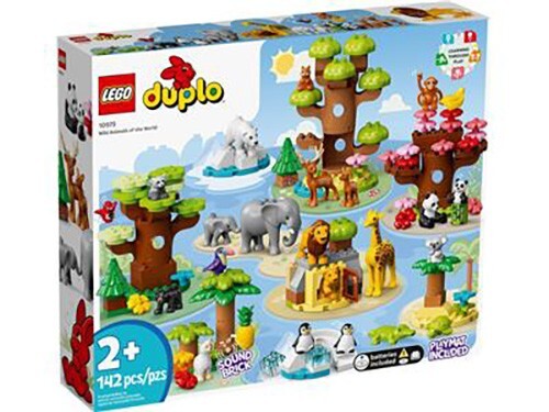 LEGO DUPLO Wild Animals of the World (10975) Explore the animal kingdom with the LEGO DUPLO set "Wild Animals of the World" (10975). Designed to spark young imaginations, this set comes complete with 142 pieces that are perfect for little hands. It's an engaging way to introduce children to their favorite animals and the wonders of the natural world.The set is tailored for builders aged 2 and up, focusing on creating a diverse range of wildlife. With the beloved LEGO DUPLO brand, this set promises to deliver hours of build-and-play fun, offering an educational experience that blends creativity and learning. Stored on a covered shelf in a smoke free environment