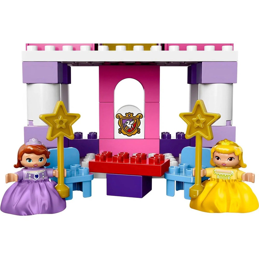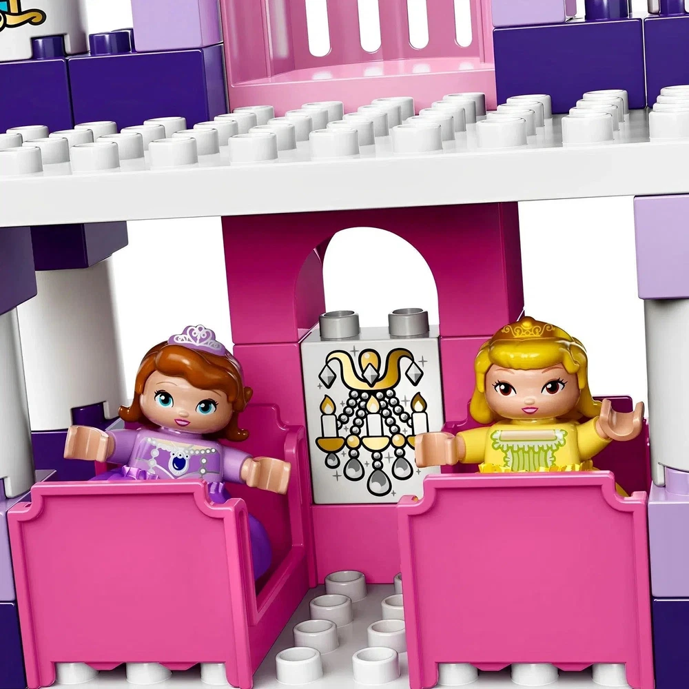 LEGO [Duplo] - Sofia's Royal Castle Building Set - Sofia the First Series (10595) Condition: New Step into the enchanting world of Disney's Sofia the First™ with the LEGO Duplo Sofia's Royal Castle Building Set (10595). Designed for young builders, this delightful set invites children to explore a magical castle alongside Princess Sofia, her stepsister Princess Amber, and Clover the rabbit. The Royal Castle is brimming with opportunities for imaginative play. Young adventurers can join Sofia and Amber in discovering the treasure chest hidden in the basement or enjoy playful moments with Clover the rabbit in the throne room. The set features a revolving dance floor perfect for royal celebrations and a charming staircase leading to the princesses' bedroom. After a day of exploration, children can tuck Sofia and Amber under the blankets to dream about their next princess adventure. With big, easy-to-handle LEGO Duplo bricks, this set is designed for safety and ease of use, making it ideal for little hands. It encourages creativity and introduces children to themes of kindness and generosity. For even more magical adventures, the set can be combined with the LEGO Duplo Sofia the First Royal Stable (10594), where Sofia’s horse, Minimus the Great, awaits. Browse what else we have in stock - thousands of toys, games, and other fun merchandise from Poggers, the best toy store in the world!