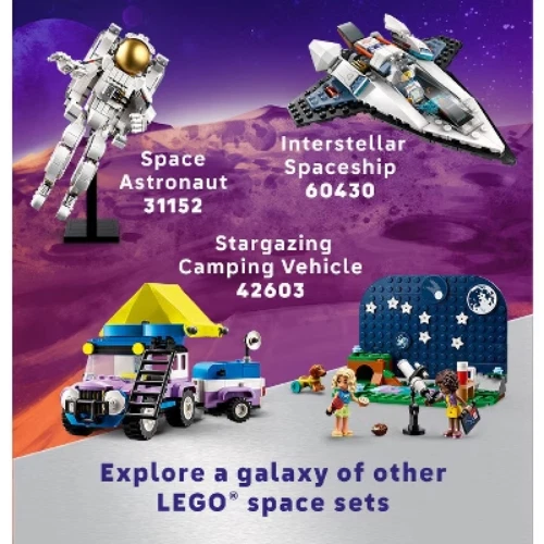 Dear buyers, since we provide free shipping service, we cannot deliver to some addresses . If your delivery address is a warehouse address , freight address or transshipment address , we will not ship even if you place an order, and our discount price is only for individual buyers. Thank you. If you have any questions, please send me a private message and I will respond actively. Description Kids who love adventure toys have lots to discover with this LEGO Friends Stargazing Camping Vehicle (42603) playset for girls, boys and kids ages 7 and up. The science toy building set includes a telescope toy, a 4x4 vehicle with camping trailer and self-folding tent, 2 mini-dolls, a dog figure and a hedgehog figure. Inspire kids to create constellations using the planets and stars to decorate the backdrop. The set also comes with accessories to help kids tell friendship stories, including mugs, cookies, dog biscuits, binoculars, a telescope, a flashlight, an electronic tablet, extra stars and prints of different planets for customization. This kids’ building kit makes a fun birthday or special-occasion gift for kids who love science exploration toys. Kids can enjoy an easy and intuitive building adventure with the LEGO Builder app. Here they can zoom in and rotate models in 3D, save sets and track their progress. Contains 364 pieces. highlights Stargazing Camping Vehicle playset – Includes a buildable 4x4 vehicle with trailer and tent, telescope toy, 2 mini-dolls, a dog figure, a hedgehog and lots of accessories for girls, boys and kids ages 7 and up Create constellations – Kids who love science exploration toys can enjoy making their own constellations for the characters to spot using the planets and stars to decorate the backdrop 2 mini-dolls and 2 animal figures – This science toy building set includes LEGO Friends characters Nova and Aliya plus a dog figure and a hedgehog figure so the creative play can start right away Camping accessories for role play adventures – Playset comes with a toy telescope, mugs, cookies, binoculars, a flashlight, extra stars and prints of different planets for customization A gift idea for kids – This adventure toy set makes a fun birthday or holiday gift, or an anytime treat for girls, boys, kids and space lovers Creative building toys – Check out other LEGO Friends sets (sold separately), for girls, boys and kids, where young builders discover diverse characters as they act out real-life adventures Measurements – 364-piece set with camping trailer toy vehicle measuring over 3.5 in. (9 cm) high, 4.5 in. (11 cm) long and 2.5 in. (6 cm) wide