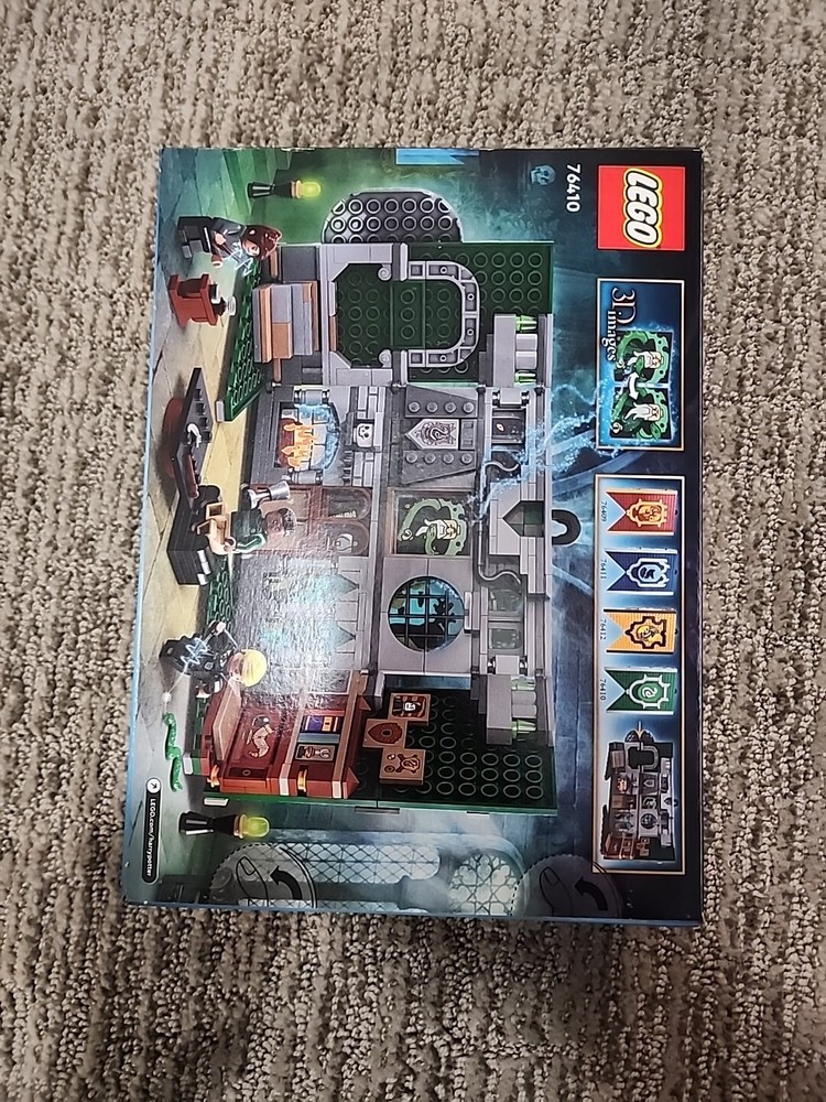 The LEGO Harry Potter Slytherin House Banner set (76410) features a buildable banner representing the Slytherin house. Released in 2023, this retired set includes a height of 10.5 inches, length of 2.5 inches, and width of 7.83 inches. Suitable for ages 9 and up, this set is part of the LEGO Harry Potter theme.