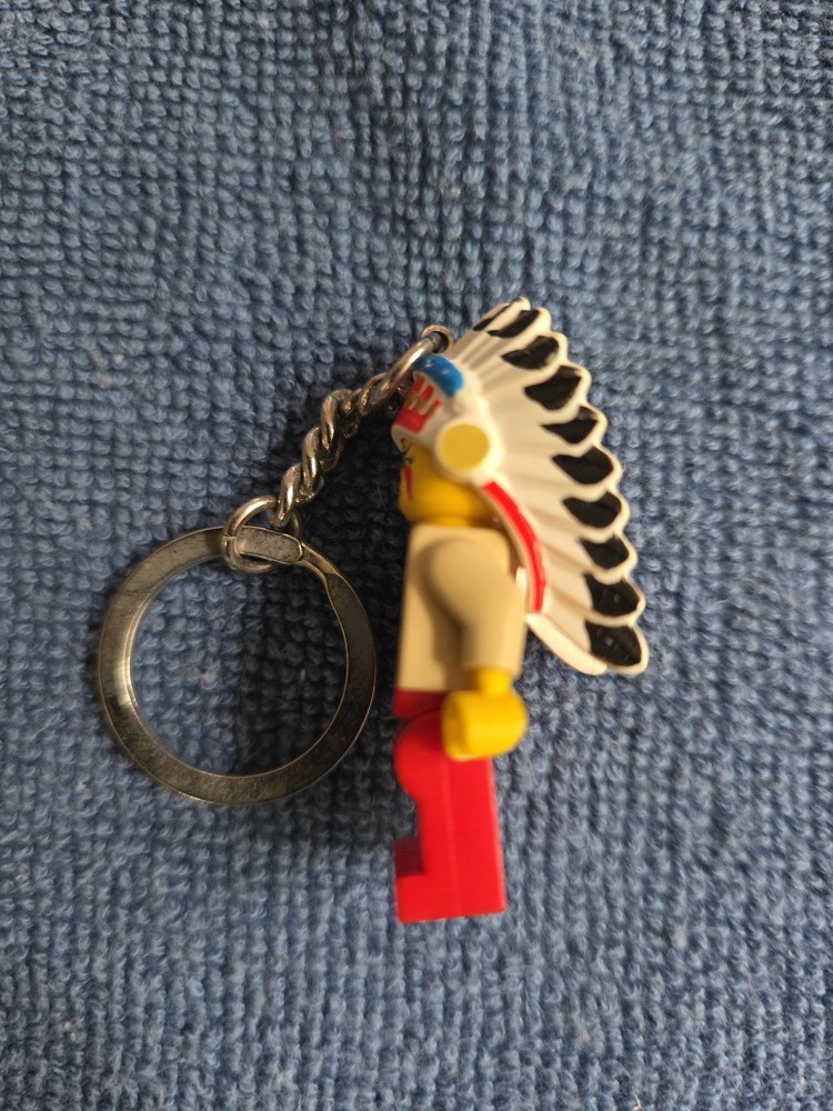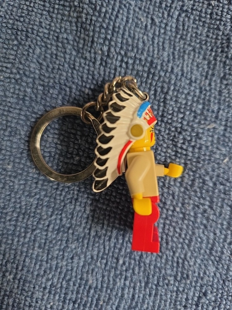 LEGO Indian Chief Minifigure Key Chain Indian Western Native American 1997. Condition is Used. Shipped with USPS Ground Advantage.