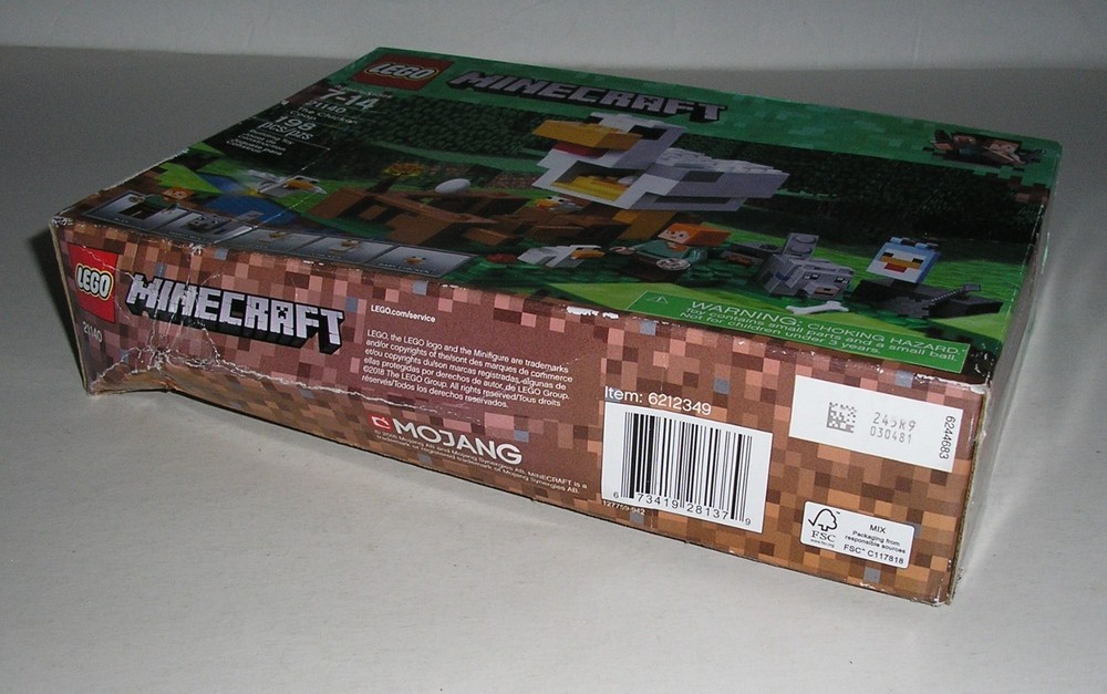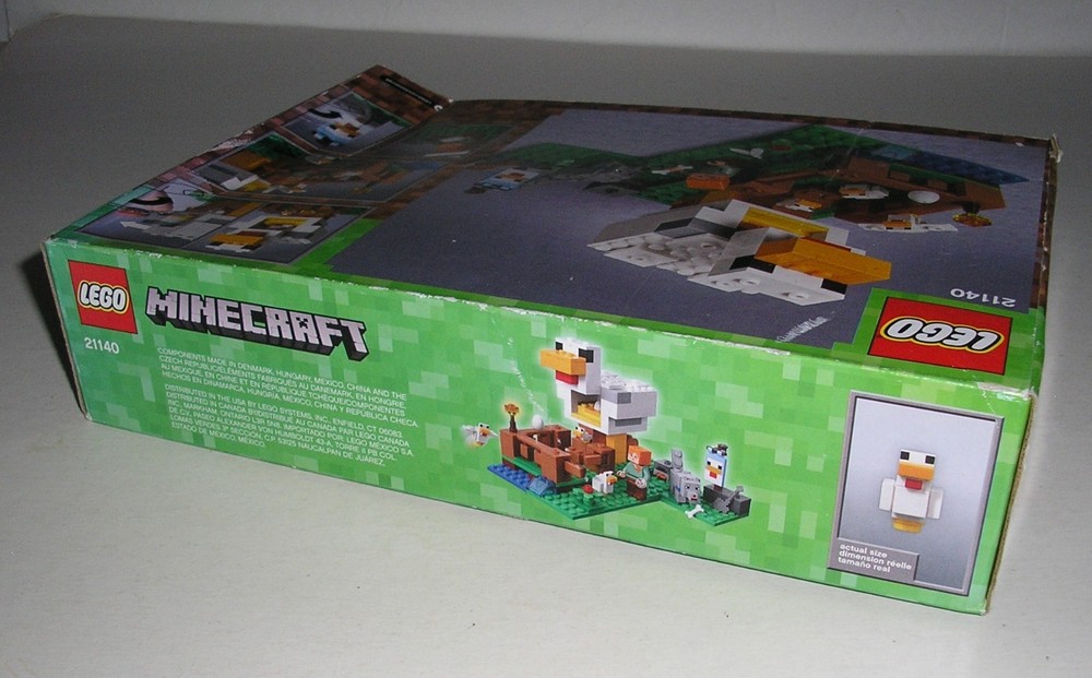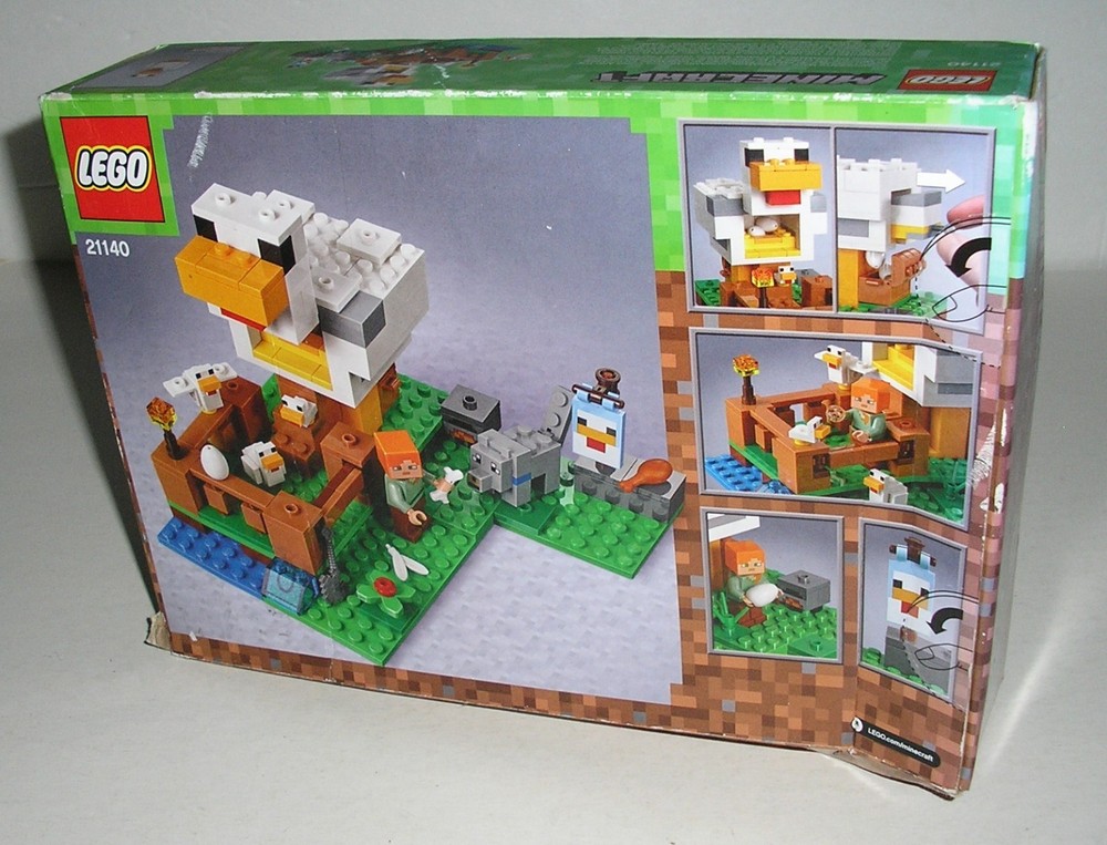 Brand:LEGOItem Weight:2.83 lbs_desc_:Build the ultimate LEGO Minecraft Chicken Coop complete with banner chicken pen with opening gate and an awesome elevated henhouse that delivers eggs directly into a chest. Tempt the chickens into the pen with the seeds then use the bone to tame the wolf and put it on guard while you tend to your flock. Collect eggs and feathers and prepare dinner on the furnace. Enjoy hands-on adventures with this LEGO Minecraft 21140 The Chicken Coop set.LEGO Theme:Minecraftgtin13:0673419281379Item Height:11.02 inItem Width:7.83 inAge Level:Jul-14MPN:21140UPC:0673419281379LEGO Set Name:The Chicken CoopLEGO Set Number:21140Country/Region of Manufacture:MexicoRelease Year:2018Number of Pieces:198Item Length:8.11 inLaunch Date:01/01/2018