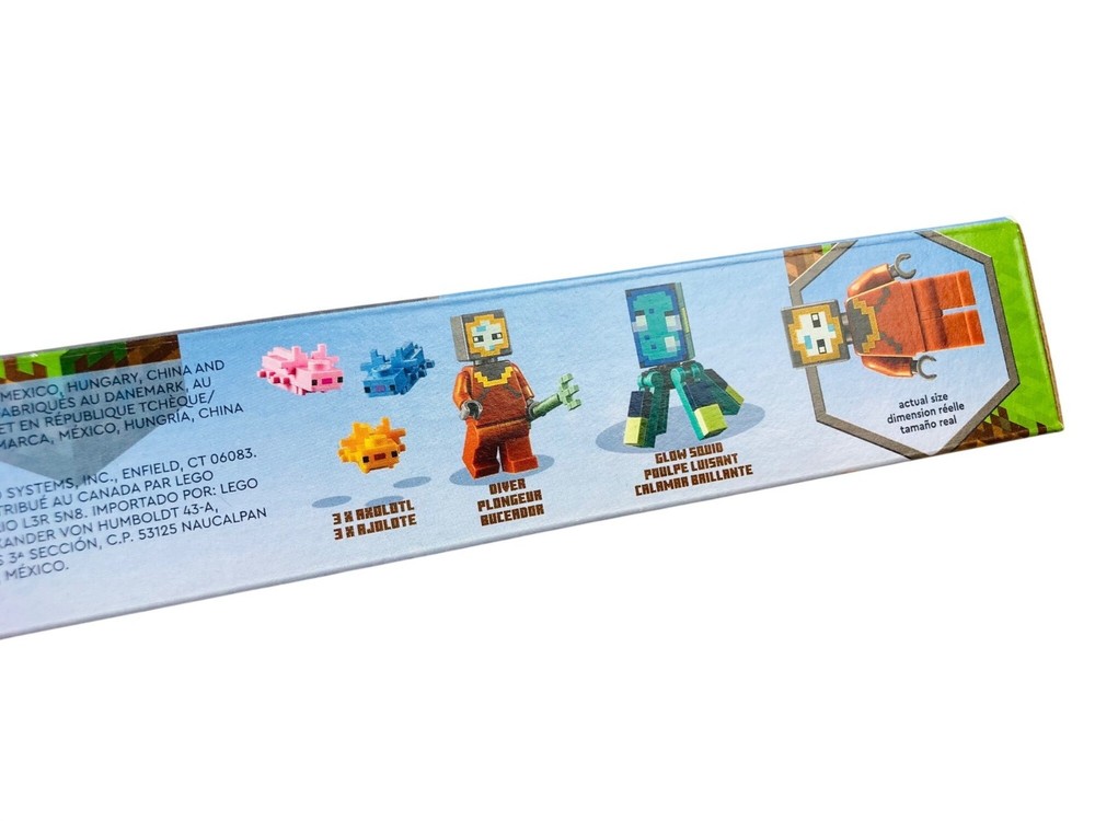 Item Width:7.83 in_desc_:Grab your diver skin jump into the Minecraft ocean and build an underwater monument. There's treasure hidden in the coral reef. But when a guardian and elder guardian swim by you must use your trident and 3 tame axolotls to fend off the hostile mobs. The elder guardian flicks its tail to launch a laser missile. Will you get to explore the monument - or will the guardians get you first!LEGO Set Number:21180Item Height:11.02 inItem Weight:3.16 lbAge Level:8+LEGO Set Name:The Guardian BattleItem Length:8.11 inLEGO Theme:MinecraftUPC:0673419358514MPN:21180Country/Region of Manufacture:Mexicogtin13:0673419358514Launch Date:01/01/2022Brand:LEGORelease Year:2022