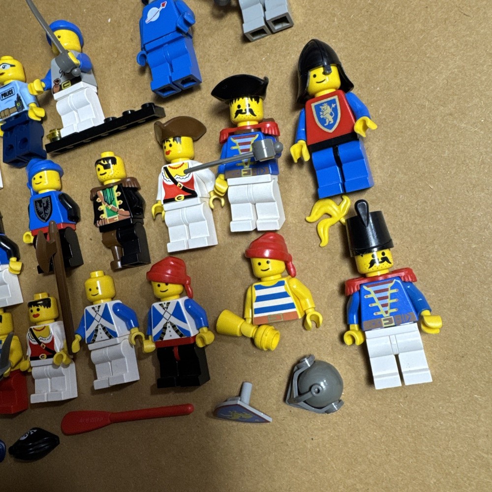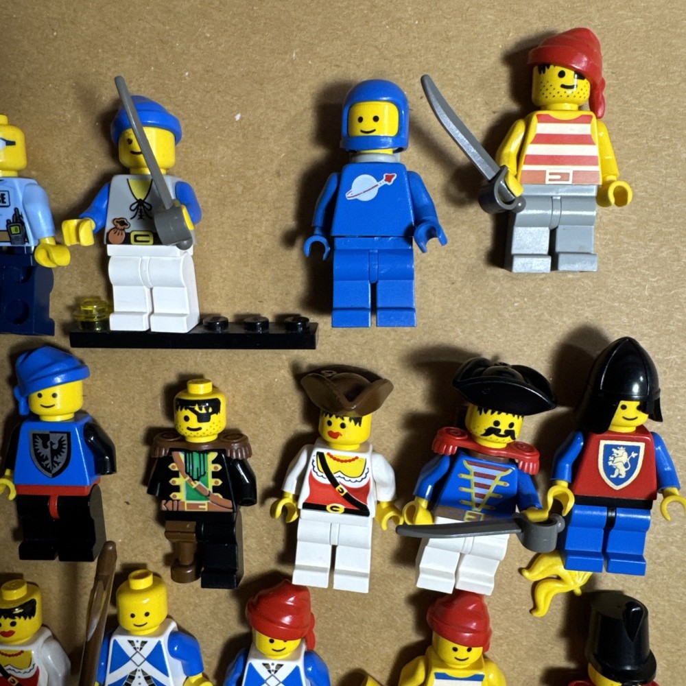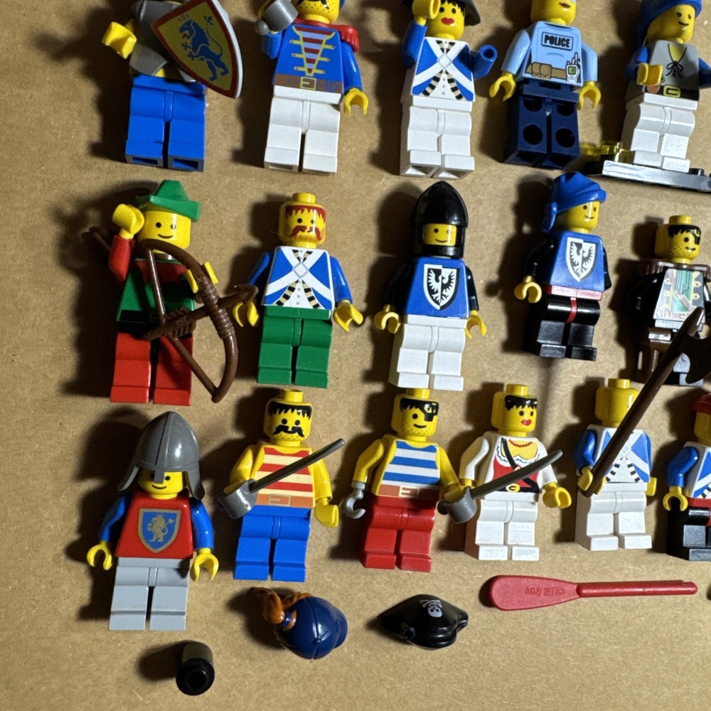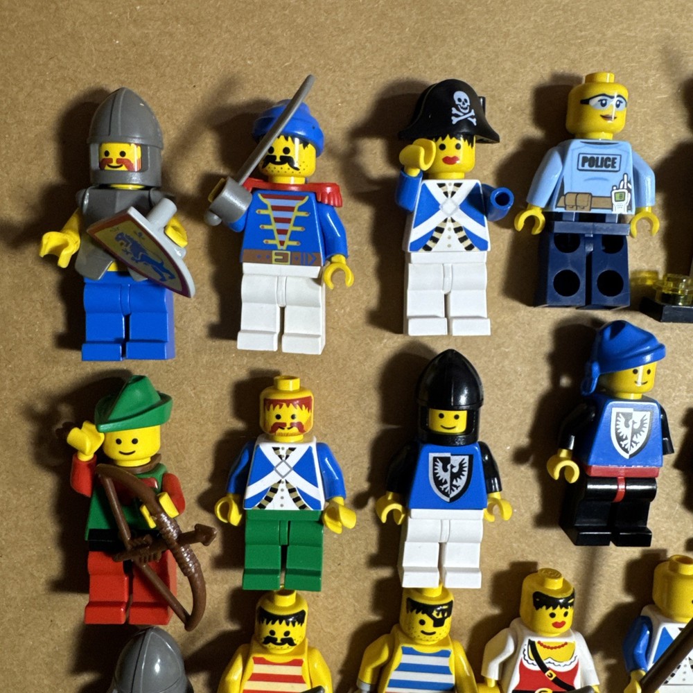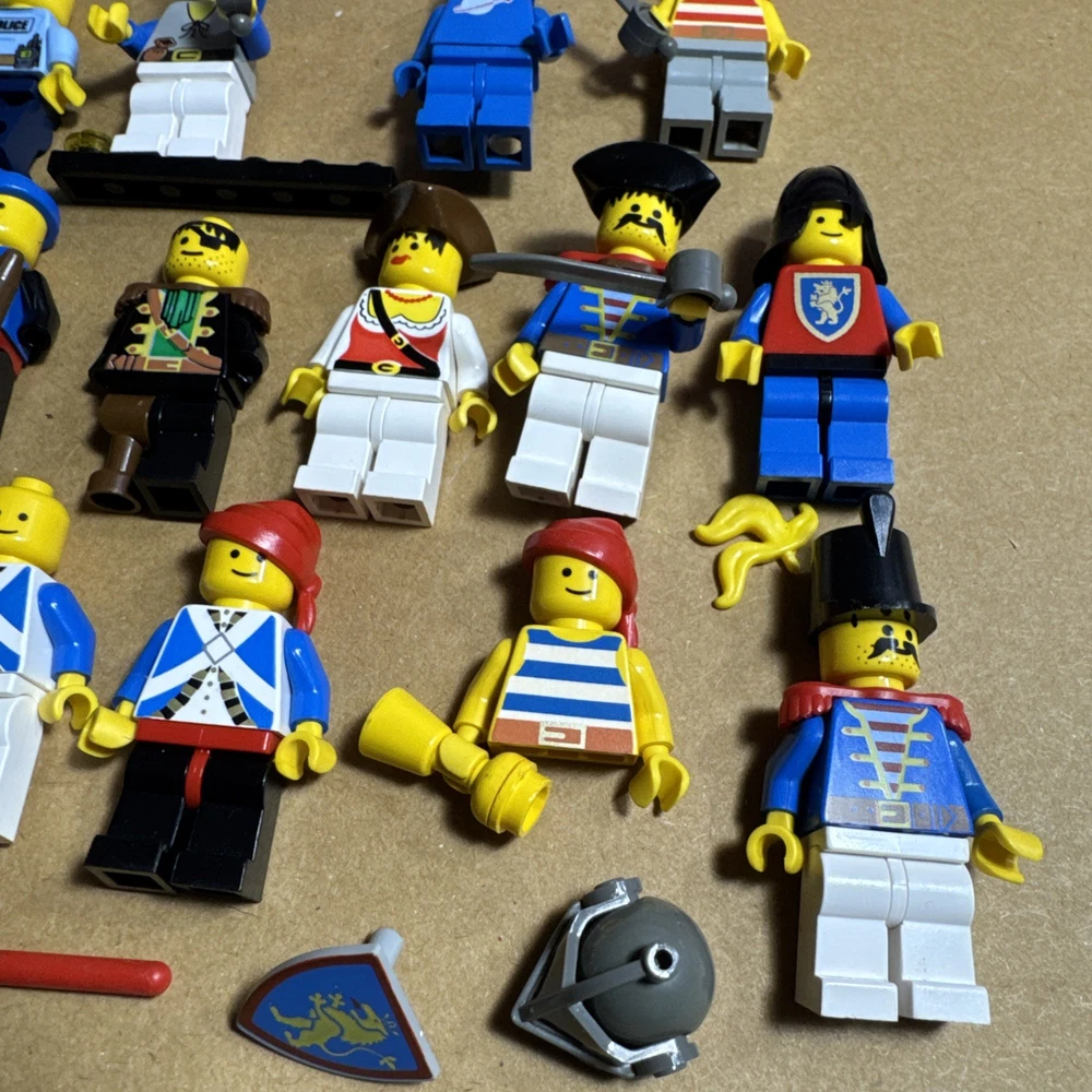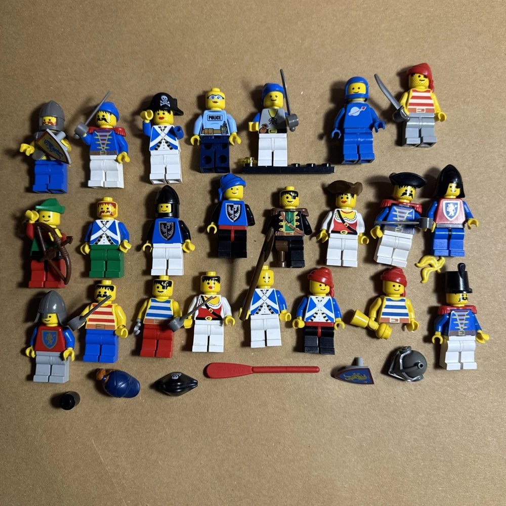 Large lot of classic LEGO minifigures and accessories. Includes a great mix of vintage Castle, Pirates, Space, Town/Police, and other classic themes from the older LEGO era. What’s included: • Approx. 20+ LEGO minifigures & accessories • Knights, soldiers, pirates, space figures, police, and townsfolk • Swords, shields, helmets, hats, and other accessories • Mix of complete and near-complete figures • Original LEGO parts (no clones) Condition: • Overall good pre-owned condition • Normal play wear from age (light scuffs, loose joints possible) • Some figures may be missing accessories or have swapped parts • Please see photos for exact contents and condition — what you see is what you get Notes for collectors: • These are the older classic minifigs with simple faces and vintage torsos • Great for collectors, MOC builders, or resale • Sold as one lot — not parting out Ships well packed and fast. Happy to answer questions!
