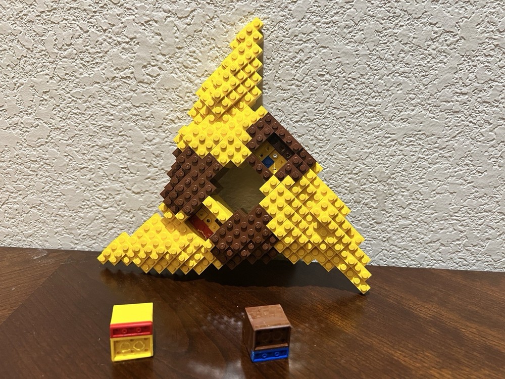 This is a glued LEGOLAND Hotel LEGO model, Ninjago Zane’s ninja star/Shuriken. This piece is retried and no longer in use, this was used inside of a Ninjago themed room at a hotel next to the LEGOLAND park, attached to a wall. The model is completely glued. The model is 2” tall, 10” long, 10” wide.