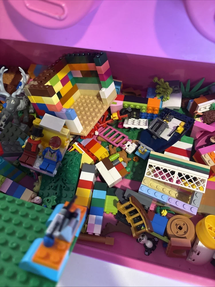 LEGO PINK 8 Knob Stackable Storage Brick Container Block Approx 10" x 19" x 7". Condition is Used. Shipped with USPS Ground Advantage.