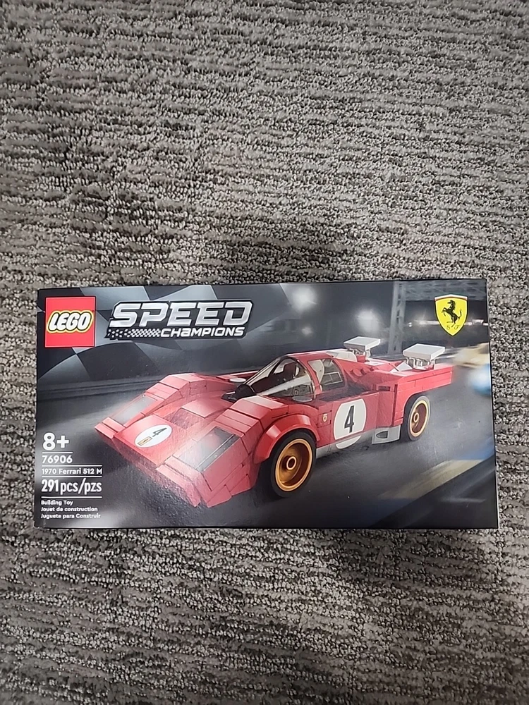 The LEGO SPEED CHAMPIONS set features the 1970 Ferrari 512 M, set number 76906. With 291 pieces, this retired set allows builders aged 8 and up to construct a detailed replica of the iconic car. The model measures 10.91 inches in length, 9.13 inches in width, and 3 inches in height.