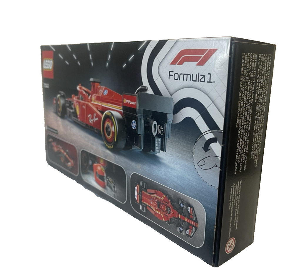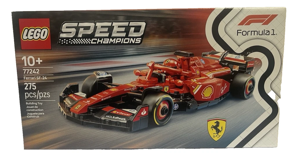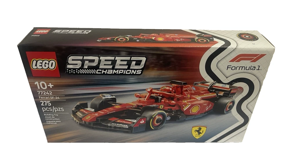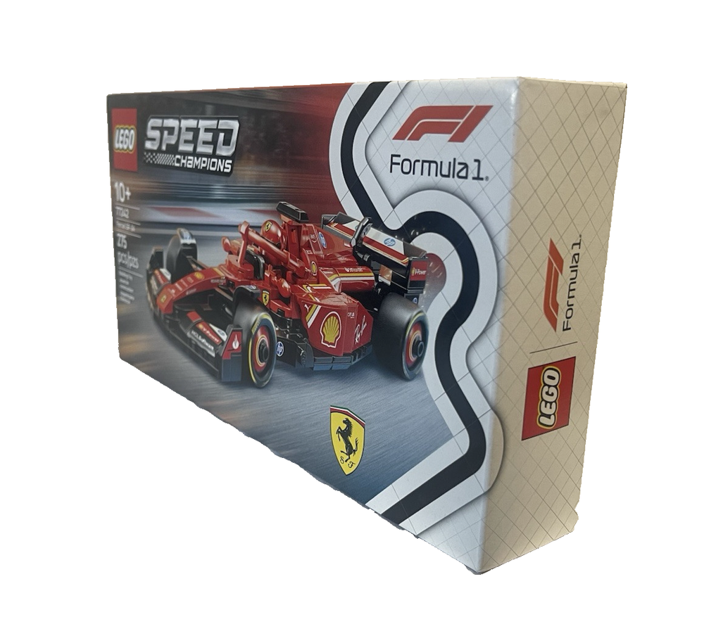 FAST FREE SHIPPING IN USA!!! ORDERS RECEIVED BEFORE 2PM - SAME DAY SHIPMENT!!! AFTER 2PM - NEXT DAY SHIPMENT!!! OUR WAREHOUSE WORKING MO-SAT(9am-9pm) CLEARANCE! Last pieces remaining—future availability currently unknown!!! "Discover our store! Explore a variety of interesting products at great prices. Don’t miss out—check it out now!" Product Details Feel the adrenaline of Formula 1 racing with this LEGO Speed Champions Ferrari SF-24 F1 Race Car. This detailed model features an opening cockpit, realistic sponsor stickers, and a Ferrari driver minifigure for thrilling race-day action. FEATURES LEGO Speed Champions Ferrari SF-24 F1 Race Car – Build, display, and race this Ferrari F1 model with a driver figure for ages 10 and up This vehicle set includes a driver minifigure wearing a special Ferrari outfit and a winged helmet for kids to place inside the cockpit and role-play thrilling race action F1 race car with design details from the real-life 2024 version, including a rear wing, a halo bar, sponsor stickers, and wider rear tires imprinted with “Pirelli” Race for the checkered flag alongside the whole family with other building sets (sold separately) in the LEGO F1 range After kids have enjoyed playing out racing stories with the Ferrari F1 toy, they can display it on a shelf or bedside table WHAT'S INCLUDED Includes 275 LEGO building elements DETAILS Age: 10 years & up 1.5"H x 8"L x 3"W Plastic Wipe clean Imported Set no. 77242