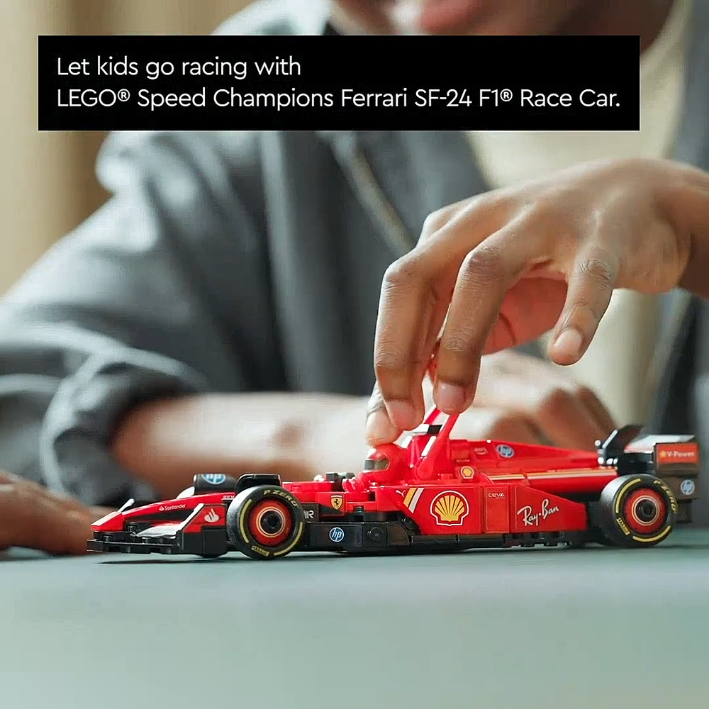 Product Description All the thrills of Formula 1® racing await boys and girls aged 10 plus in this incredible LEGO® Speed Champions Ferrari SF-24 F1® Race Car (77242) and driver set. The Ferrari toy vehicle features details from the real-life car that competed in the 2024 Formula 1 season, and kids and adult car collectors can build, display and race with it. The F1 model car features a cockpit that opens by lifting the halo bar, a rear wing, wishbone suspension, sponsor stickers and wider rear tyres imprinted with “Pirelli”. The F1 race car also comes with a driver minifigure wearing a Ferrari outfit and a winged helmet to place inside the cockpit and stage races. LEGO Speed Champions sets let racing fans build models of some of the world’s most iconic vehicles, including other Formula 1 cars (sold separately) from the 2024 championship season. Each vehicle kit can be created using the printed building instructions or the LEGO Builder app to guide you and your kid on an enjoyable building adventure. - Ferrari F1® toy vehicle for kids – Boys and girls aged 10 and over and Ferrari fans can build, display and race the LEGO® Speed Champions Ferrari SF-24 F1 Race Car and driver set - 1 minifigure – This vehicle set includes a driver minifigure wearing a special Ferrari outfit and a winged helmet for kids to place inside the cockpit and role-play thrilling race action - Authentic Ferrari details – F1® race car with design details from the real-life 2024 version, including a rear wing, a halo bar, sponsor stickers and wider rear tyres imprinted with “Pirelli” - F1® fun for all the family – Race for the chequered flag alongside the whole family with other building sets (sold separately) in the LEGO® F1 range - F1® race car toy display model – After kids have enjoyed playing out racing stories with the Ferrari F1 toy, they can display it on a shelf or bedside table - F1® gift idea – This premium Ferrari F1 merchandise provides a fun build-and-play experience and is a great LEGO® gift idea for kids aged 10 and over and adult car-model collectors - Build iconic car models – LEGO® Speed Champions sets let kids and car lovers create brick-built versions of some of the world’s most famous vehicles - Measurements – A 275-piece vehicle kit featuring a Ferrari SF-24 F1® toy car that measures over 4 cm (1.5 in.) high, 20 cm (8 in.) long and 7 cm (3 in.) wide