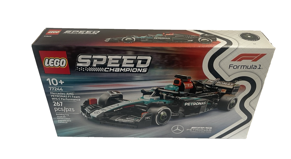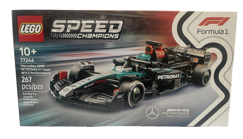 FAST FREE SHIPPING IN USA!!! ORDERS RECEIVED BEFORE 2PM - SAME DAY SHIPMENT!!! AFTER 2PM - NEXT DAY SHIPMENT!!! OUR WAREHOUSE WORKING MO-SAT(9am-9pm) CLEARANCE! Last pieces remaining—future availability currently unknown!!! "Discover our store! Explore a variety of interesting products at great prices. Don’t miss out—check it out now!" Product Details Rev up the excitement with this LEGO Speed Champions Mercedes-AMG F1 W15 Race Car. With authentic design elements, a driver minifigure, and an opening cockpit, this buildable model is perfect for collectors and racing fans. FEATURES LEGO Speed Champions Mercedes-AMG PETRONAS F1 Team Race Car – Build an authentic Mercedes-AMG F1 car for display and racing fun for ages 10 and up This car playset includes a driver minifigure wearing a Mercedes-AMG PETRONAS F1 Team outfit and a winged helmet for kids to place inside the cockpit for role-play race action The F1 race car features design details from the real-life 2024 version, including sponsor stickers and wider rear tires imprinted with “Pirelli” Race for the checkered flag alongside the whole family using other building sets (sold separately) in the LEGO F1 range After kids have enjoyed playing out racing stories with the Mercedes-AMG PETRONAS F1 Team toy, they can display it on a shelf or bedside table WHAT'S INCLUDED Includes 267 LEGO building elements DETAILS Age: 10 years & up 1"H x 8"L x 3"W Plastic Wipe clean Imported Set no. 77244