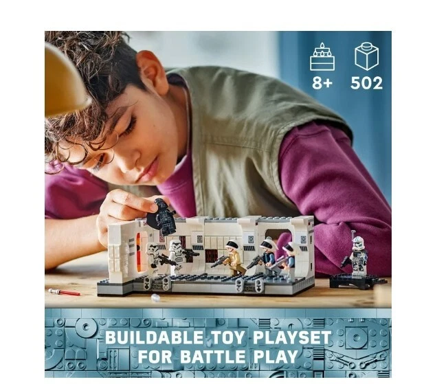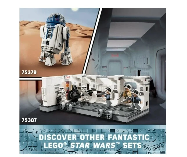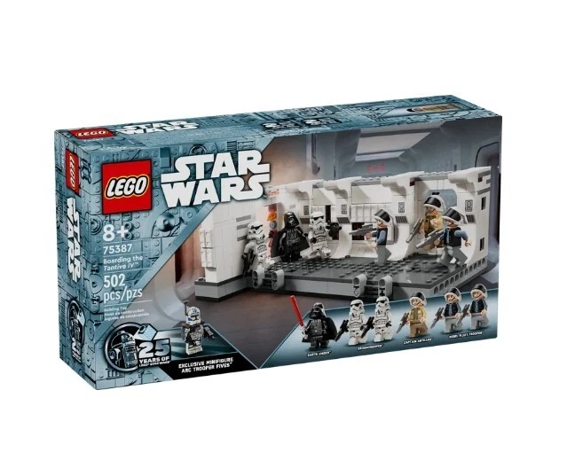 LEGO Star Wars: A New Hope Boarding the Tantive IV Fantasy Toy,75387,Freeship USA Product details Relive Darth Vader and his Stormtroopers boarding the Tantive IV in Star Wars: A New Hope with this buildable toy playset (75387) for kids aged 8 and up. It features a detailed recreation of the corridor inside Tantive IV where Darth Vader’s Stormtroopers battled Captain Antilles’ Rebel Fleet Troopers, with levers to ‘blast’ open the entrance door and topple characters during battle play. Connectors allow builders to add another 75387 set (sold separately) to extend the corridor. This collectible brick-built fantasy toy playset has 7 LEGO Star Wars minifigures, including Darth Vader, 2 Stormtroopers, 2 Rebel Fleet Troopers and Captain Antilles with accessories for action play. A top gift for young fans and Star Wars memorabilia collectors, the building set also includes a special LEGO Star Wars 25th Anniversary of Clone Trooper Fives minifigure with a display stand. Contains 502 pieces. LEGO Star Wars Tantive IV buildable playset for kids – Recreate the iconic Boarding the Tantive IV scene from Star Wars: A New Hope where Darth Vader and his Stormtroopers battled the Rebels 7 LEGO Star Wars minifigures – Darth Vader, 2 Stormtroopers, 2 Rebel Fleet Troopers and Captain Antilles, plus a LEGO Star Wars 25th anniversary of Clone Trooper Fives minifigure with a display stand Buildable fantasy toy playset with fun features – Flick levers to ‘blast’ open the entrance door to the corridor and topple LEGO® minifigures during battle play Collectible Star Wars toy for kids – Connectors allow builders to add another 75387 set (sold separately) to extend the corridor Fun gift for Star Wars fans aged 8 and up – Give this collectible building toy as a birthday gift to kids who are into Star Wars and collectors of Star Wars memorabilia LEGO Star Wars sets for all ages – LEGO Star Wars building toys enable kids and adult fans to recreate iconic scenes, make up their own action adventures or simply display the brick-built models Build, play and display – The Tantive IV corridor buildable model in this 502-piece set measures over 3 in. (8 cm) high, 8.5 in. (22 cm) wide and 5 in. (13 cm) deep More details Features Collectible Brand LEGO Age Range 8 Years & Up Character Darth Vader, Clone Trooper Fives Product Line LEGO Star Wars Theme LEGO Star Wars Manufacturer LEGO System Inc Material Plastic Color Multicolor Assembled Product Weight 1.933 lb Assembled Product Dimensions (L x W x H) 13.94 x 7.52 x 3.58 Inches