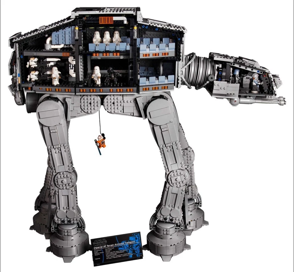 Brand:LEGOLEGO Set Name:AT-AT_desc_:Relive the Battle of Hoth as you build this Ultimate Collector Series AT-AT. Recreate authentic details such as the posable legs and head and weapons. The body fits up to 40 LEGO minifigures (9 included) and 4 speeder bikes (2 included) inside. Attach a line for Luke Skywalker just like he did in Star Wars: The Empire Strikes Back. Add the nameplate to complete a wonderful display piece.Item Length:23.78 ingtin13:0673419340618Item Height:21.14 inMPN:75313Launch Date:03/01/2022Country/Region of Manufacture:MexicoRelease Year:2022Age Level:18+LEGO Set Number:75313Item Width:15.98 inLEGO Theme:Star WarsUPC:0673419340618Number of Pieces:6785Item Weight:28 lb