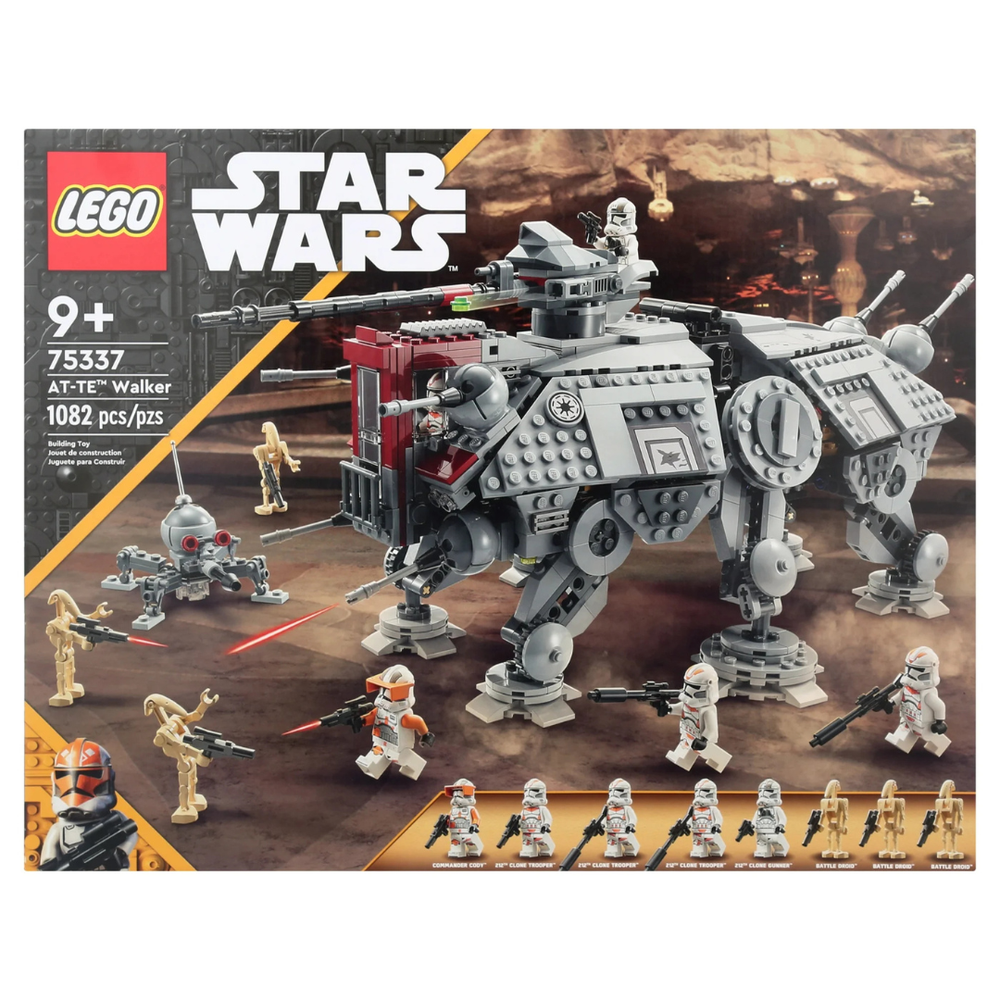 SHIPPING & CUSTOMER SERVICE INFORMATION 📦 ✅ We ship from the USA within 5–15 business days. ✅ Free Shipping – Free Returns – Money Back Guarantee ✅ No extra fees, no import tax — the price you see is the final price! If you see any message asking you to pay import taxes, please ignore it . Rest assured that all costs are already included in the listed price. 🚫 We do not ship to warehouse addresses or PO boxes , as this may result in lost packages. Please provide a valid residential or business address. 🛑 If you experience any issues with your order, please contact us directly via eBay message. ⚠ ️ Do not open a dispute — once a case is opened, we are unable to assist. Direct communication allows us to resolve your issue faster and more effectively. Thank you for shopping with us! Feel free to reach out anytime if you have questions. LEGO Star Wars at-TE Walker 75337 Poseable Toy, Revenge of The Sith Set, Gift for Kids with 3 212th Clone Troopers, Dwarf Spider & Battle Droid Figures About this item Product details Young Padawans can recreate the Battle of Utapau with this fantastic LEGO Star Wars AT-TE Walker (75337). A great gift idea for Star Wars: Revenge of the Sith fans aged 9 and over. This Star Wars building toy features posable legs and a 360-degree-rotating elevating heavy blaster cannon with 2 stud shooters. There is a detachable minifigure cockpit and 2 detailed cabins with space for up to 7 LEGO minifigures in total. Each of the cabins opens for easy play and an extendable handle makes it simple to lift and move the Star Wars AT-TE model. The set includes 5 LEGO Star Wars minifigures – Commander Cody, a 212th Clone Gunner and 3 212th Clone Troopers – to pit against 3 Battle Droid LEGO figures and a buildable Dwarf Spider Droid, plus assorted cool weapons. Kids will find building instructions in the box and on the LEGO Building Instructions app, which has interactive viewing tools to enhance the creative experience. Explore the entire LEGO Star Wars collection to discover other construction toys to delight fans of all ages. AT-TE Walker measures over 7.5 in. (19 cm) high, 17 in. (44 cm) long and 9.5 in. (24 cm) wide. Contains 1,082 Pieces. This LEGO Star Wars building toy features AT-TE Walker with space for up to 7 minifigures, 360-degree-rotating heavy blaster cannon and more Kids can use the extendable handle to lift and move the AT-TE, plus the model also has 2 detailed Clone Trooper cabins that open for easy play The set also features a detachable minifigure cockpit and a seat for the 212th Clone Gunner, 6 blaster cannons, 2 thermal detonators and more Includes 5 LEGO Star Wars minifigures: Commander Cody, a 212th Clone Gunner and 3 212th Clone Troopers for kids to recreate epic battles The Star Wars buildable toy also includes 3 Battle Droid figures, a buildable Dwarf Spider Droid figure and loads of cool weapons Kids can relive epic Star Wars: Revenge of the Sith battles and display this set in their room and show it off to their friends after the play Step-by-step illustrated instructions in the box; plus LEGO Building Instructions app for digital instructions and interactive viewing tools info: Specifications Count 1082 Age range 9 Years & Up Character group Star Wars Is collectible Y Product line LEGO Star Wars Model 75337 Brand LEGO Theme LEGO Star Wars Global brand license Star Wars Character 212th Clone Gunner, Commander Cody, 212th Clone Trooper, Battle Droid Age group Child, Teen, Adult Minimum recommended age 9 years From the manufacturer Mighty AT-TE Walker for action play Star Wars: Revenge of the Sith fans can recreate the Battle of Utapau with this detailed AT-TE Walker building toy. Hours of creative fun This buildable model is packed with authentic features to inspire young Star Wars fans to dream up their own epic stories. LEGO Star Wars AT-TE Walker Extendable handle Use the handle to lift and move the AT-TE. Easy-access cockpit and cabins There is space for up to 7 LEGO minifigures inside. Heavy blaster cannon Elevate, rotate and activate the heavy cannon. Other playful feature 2 stud shooters, 2 thermal detonator elements and more. Great set for role play Includes 5 LEGO Star Wars minifigures and 3 Battle Droids. Build with confidence Find building instructions in the box and on the app. Awesome gift idea for kids This top-quality set makes a great gift for kids who love Star Wars: Revenge of the Sith and any LEGO Star Wars collector.