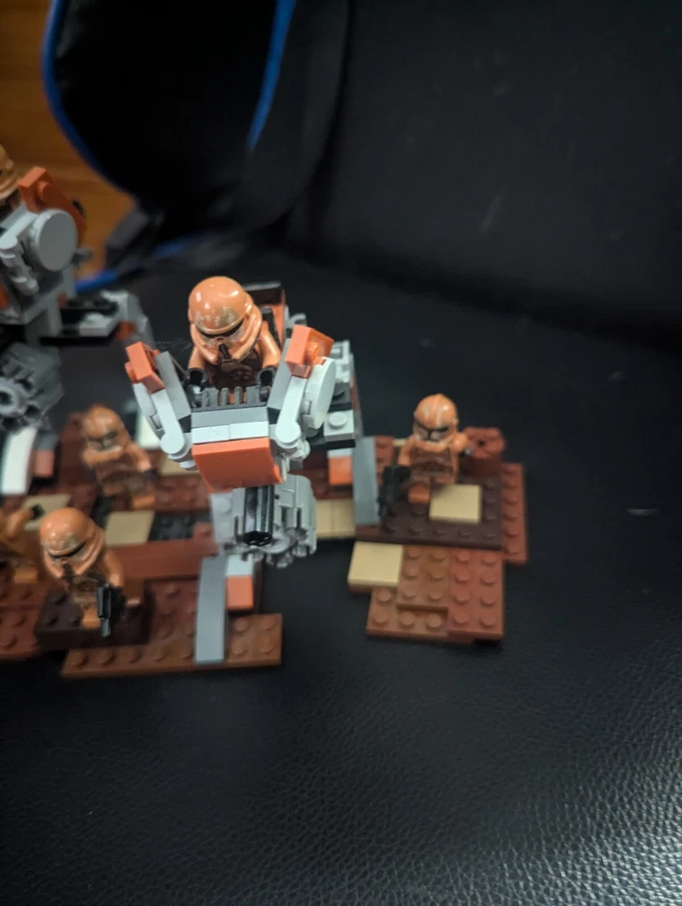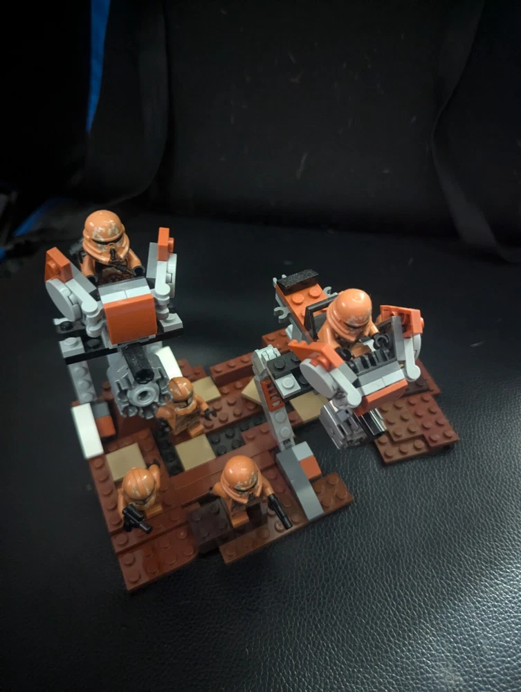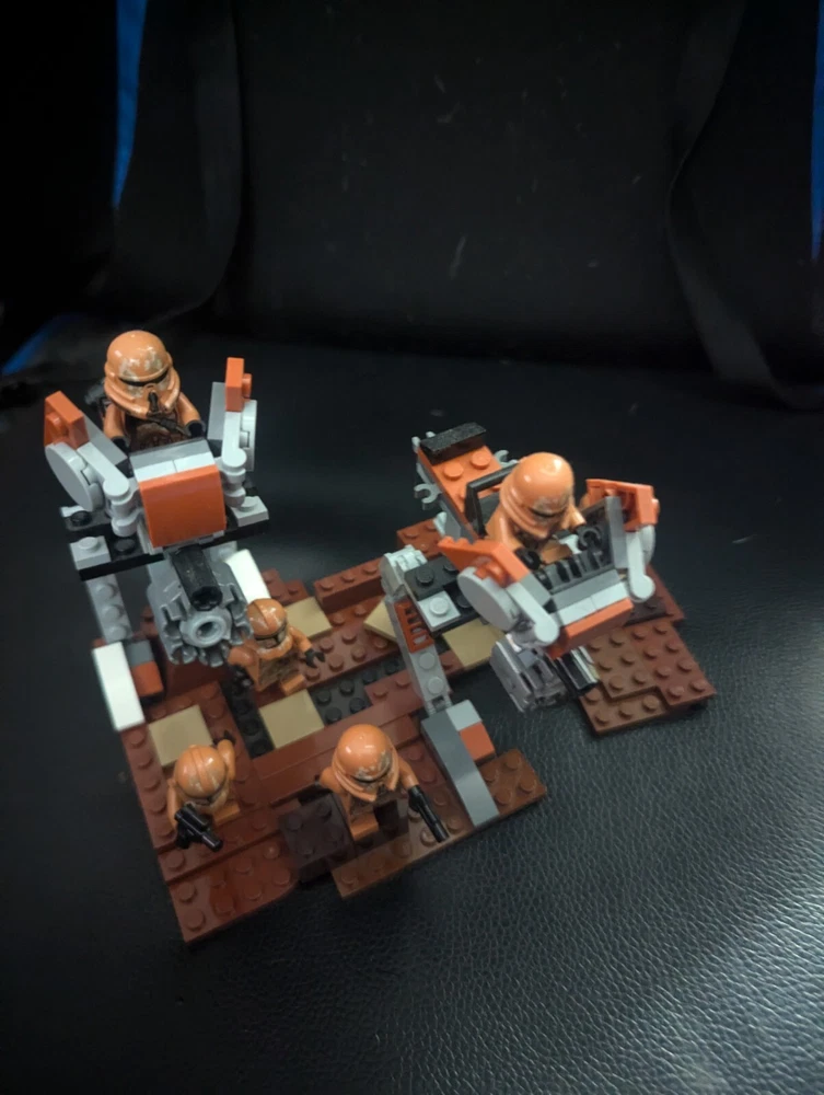 6 geonosis minifigures. Plus custom Lego "base plate" for display all made with real Lego. Battle pack as is should be complete for the walker builds but some pieces are same piece different color. As is.