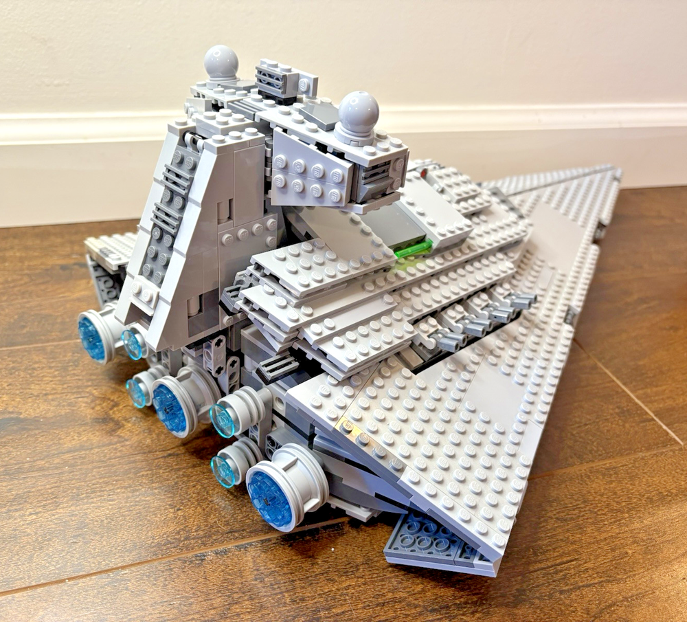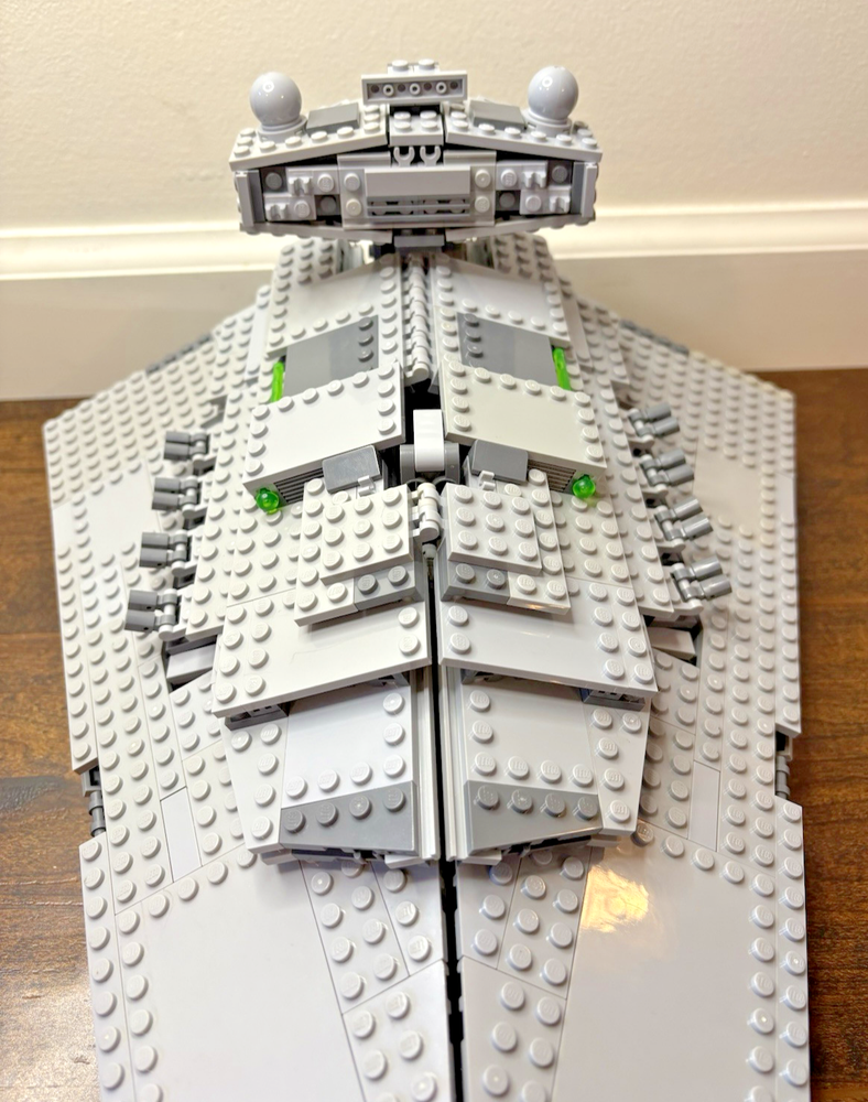 LEGO Star Wars: Imperial Star Destroyer (75055) - 99% Complete The ship build is complete but is missing most stickers. Some stickered pieces are included. Does not include minifigures or their accessories/weapons. Includes part of the mouse droid (the brick has studs on each side instead of only on 2 sides). Includes the trans-light blue Emperor Palpatine Hologram statue. Disassembled for shipping. No box, no manual. Sets that are pre-owned may contain light play wear. Minor imperfections include minor yellowing, light scratches, rubs, marks, or print issues.