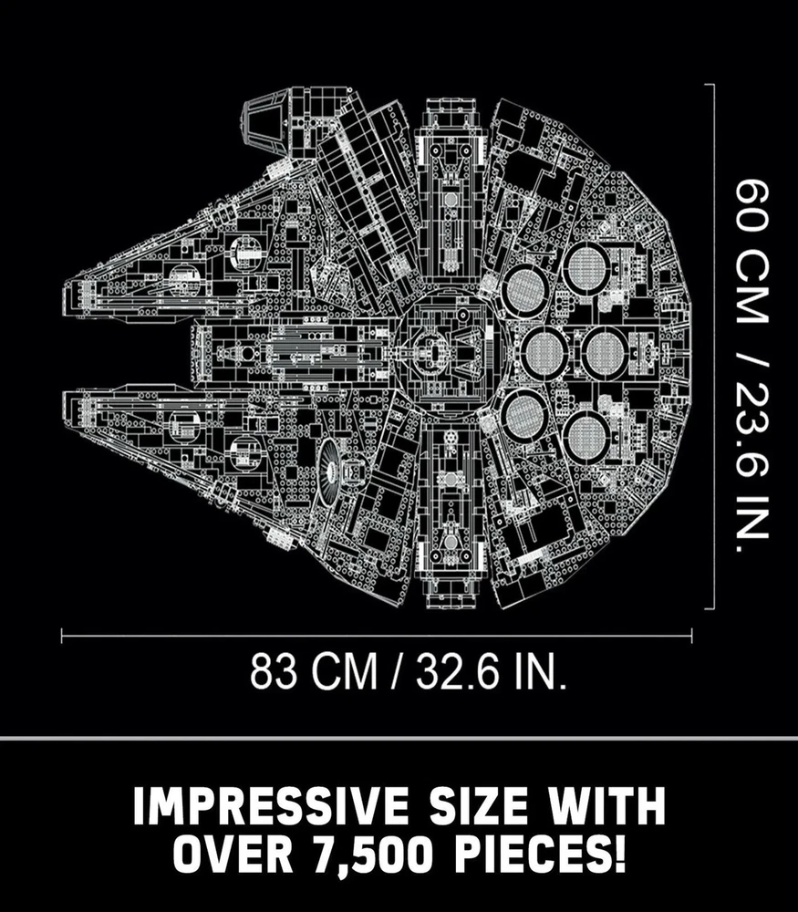 ๐ฅ Build the Most Iconic Star Wars Spaceship! This Ultimate Collector Series Millennium Falcon building block set brings the legendary ship to life with 7,541 pieces , detailed interior compartments, and 8 collectible minifigures . A must-have for Star Wars fans, sci-fi enthusiasts, and master builders! This product is 100%High graded replica you just love it. ๐งฑ Product Highlights: โ Compatible with LEGO and other major brick brands (NOT a LEGOยฎ product) โ Brand New โ Factory Sealed โ Premium ABS Plastic โ High-quality, durable, and safe โ CE Certified โ Meets global safety standards โ Massive Piece Count โ 7,541 bricks for the ultimate build โ Detailed Interior & Features โ Rotating turrets, retractable landing gear, cockpit, cargo hold & more! โ Collectorโs Scale Size โ 33" L x 22" W x 8" H (84 x 56 x 20 cm) โ Minifigures Included โ Han Solo, Chewbacca, Princess Leia, C-3PO & more (8 total) โ Instruction Manual โ Included digitally or printed โ Packaging โ Ships in secure plain box or polybag (no original box provided) ๐ Why Youโll Love It: ๐ง Advanced UCS Star Wars Set โ Incredible build challenge & display piece ๐ Perfect Gift for Star Wars Fans โ Ideal for birthdays, holidays, or collectors ๐ High Compatibility & Fit โ Smooth, snug connections for satisfying assembly ๐ Rare Collector's Model โ Showcase your Star Wars passion ๐ Shipping & Delivery Info: ๐ฆ Fast Dispatch โ Ships in 1โ4 business days, strictly no cancellations/returns ๐ Worldwide Shipping โ 7โ15 business days via tracked courier ๐ซ Tracking Provided โ Plus transit insurance included