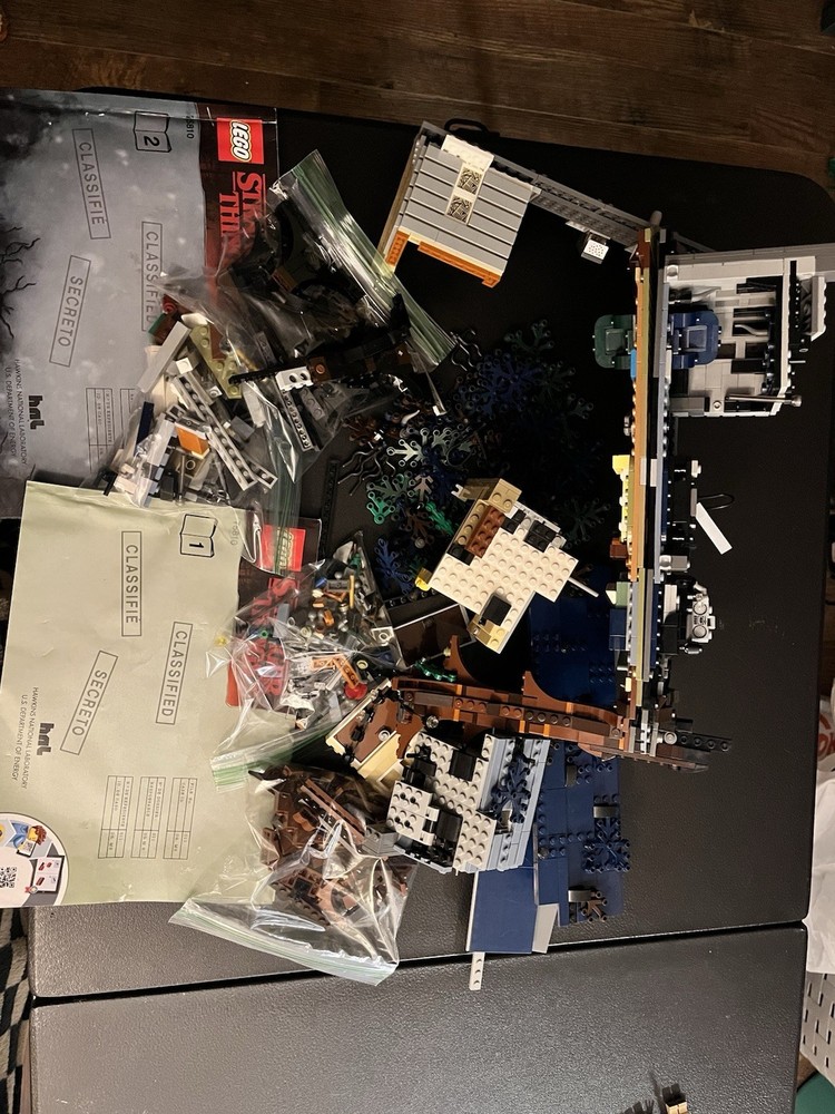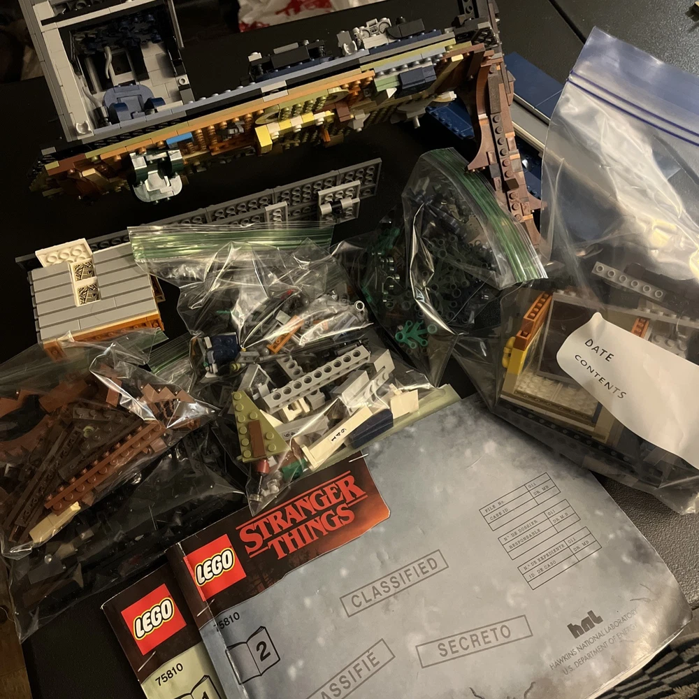 Ok folks what we have here is just the upside down house 75810 WITH the manuals. I want to say it’s all here, but there is no way to know for sure. It was when it went in the box When I moved. All the important structural pieces are here:) but still not making any promises:) this set does not have the minifigs, the suburban, the bicycle or the accessories for the minifigs. A lot of it is already together and the manuals are here… so let’s have some fun on a set that has taken off in value!!! If you’re looking for the minifigs or the suburban see my other listings! Starting this at 1$!!! Manuals have some water damage, but are still in readable- usable shape.