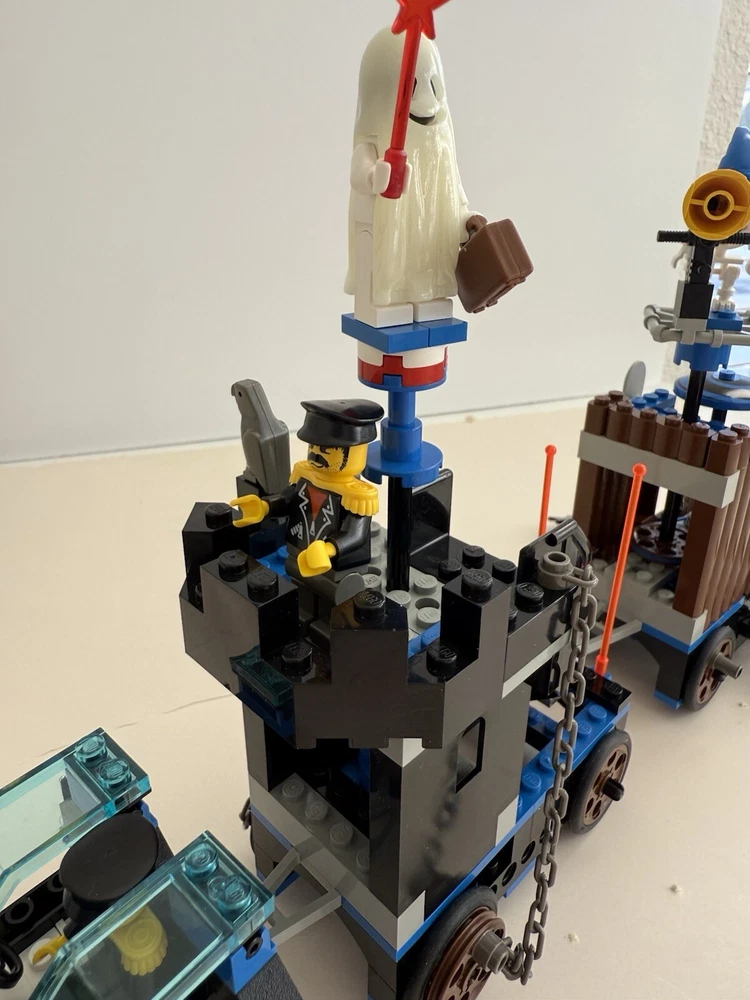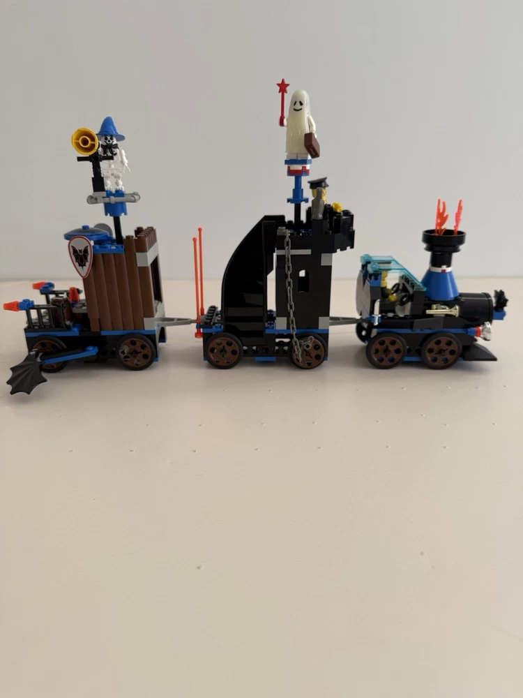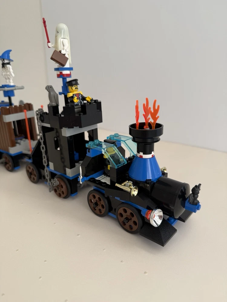 This is a LEGO Time Twisters set, specifically the Twisted Time Train (6497) from the Time Cruisers theme. Released in 1997 with 296 pieces, this retired set includes the box, instructions, and features a train design. Box may show some wear. For ages 9-12 and is made of plastic. 3 part train: engine with pilot seat, observation car with balcony, Ghost car with castle like features. 2 mini figures, Ghost and Skeleton. I’ve been an adult collector of Legos and other collectibles for the past 30 years. All of my items have been purchased new and have only had one owner-me. It is stored in their original boxes in a smoke-free environment.