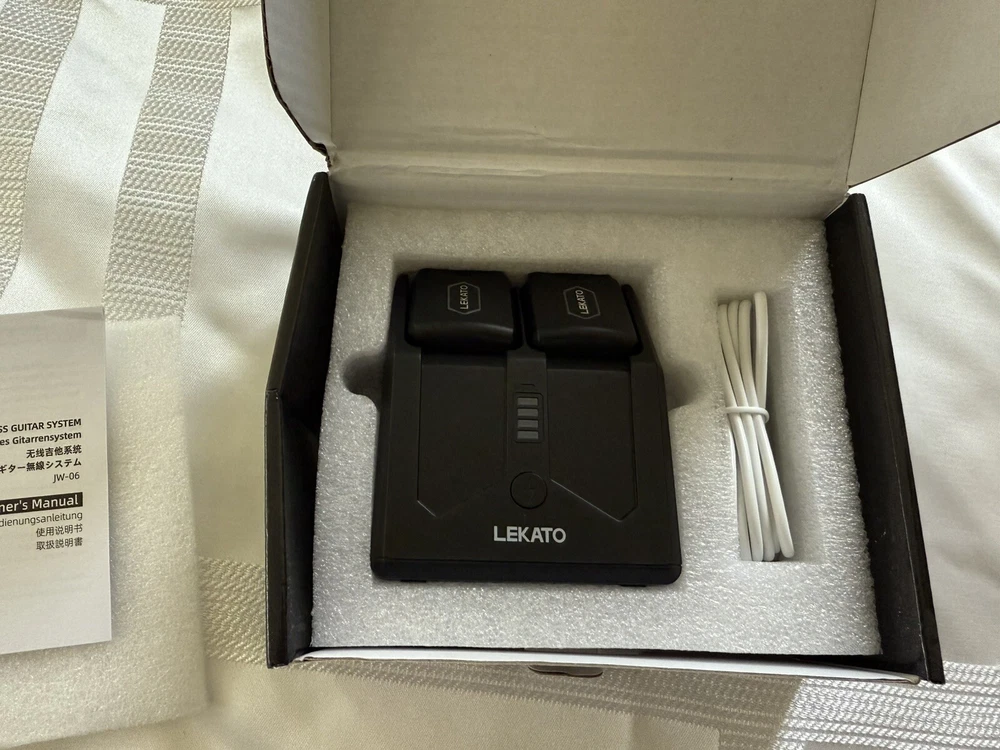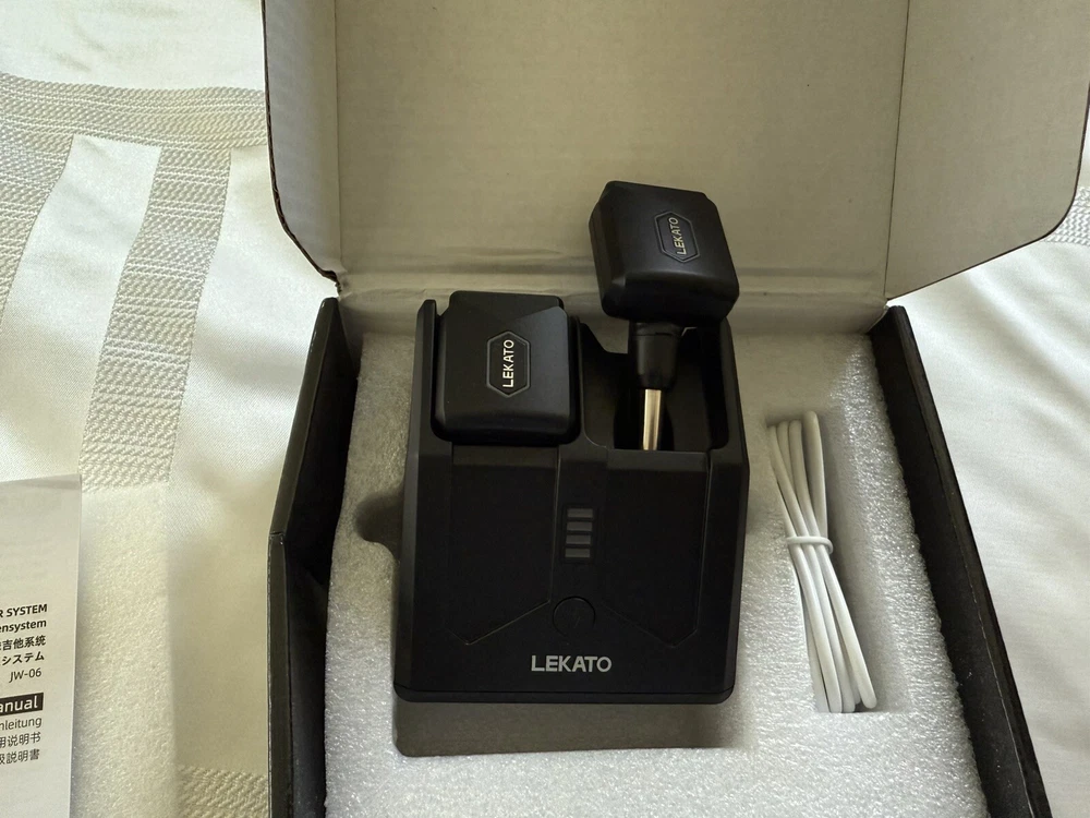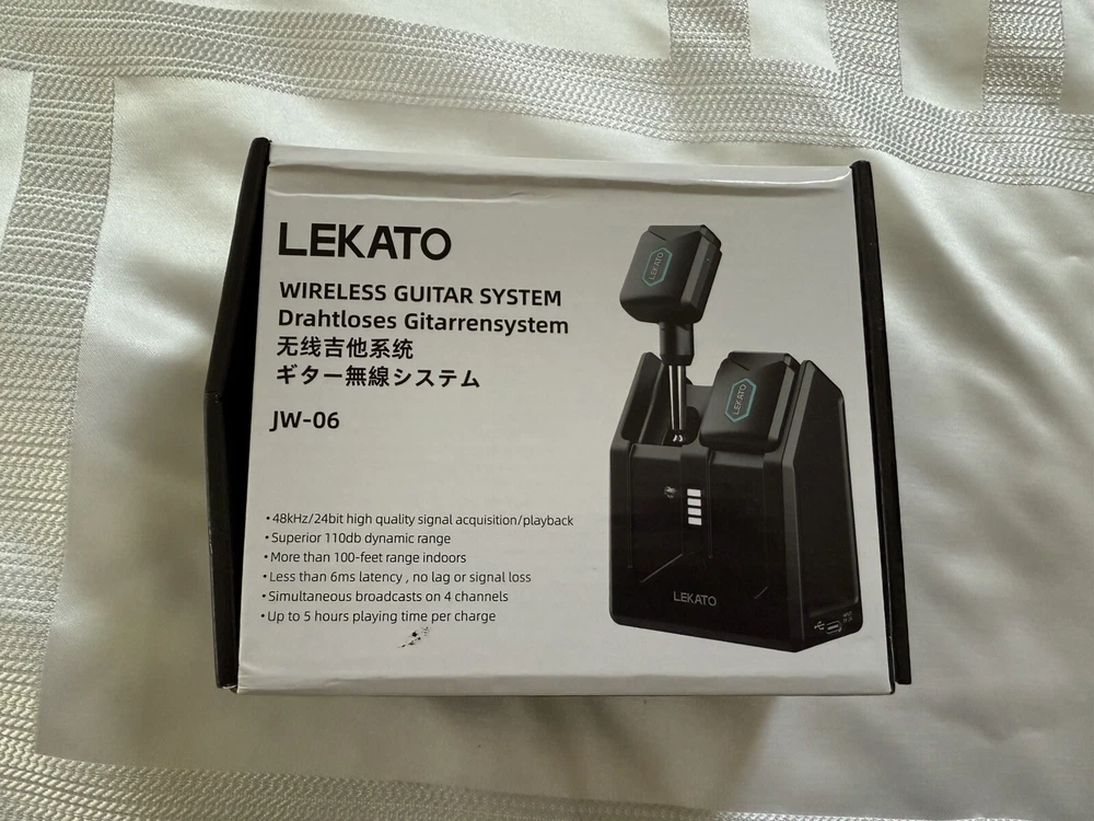 New open box LEKATO Wireless Guitar System 5.8G Wireless Guitar Transmitter Receiver with Charging Box Rechargeable Audio Wireless Guitar Transmitter and Receiver with 4 Signal Channels for Electric Guitar Bass