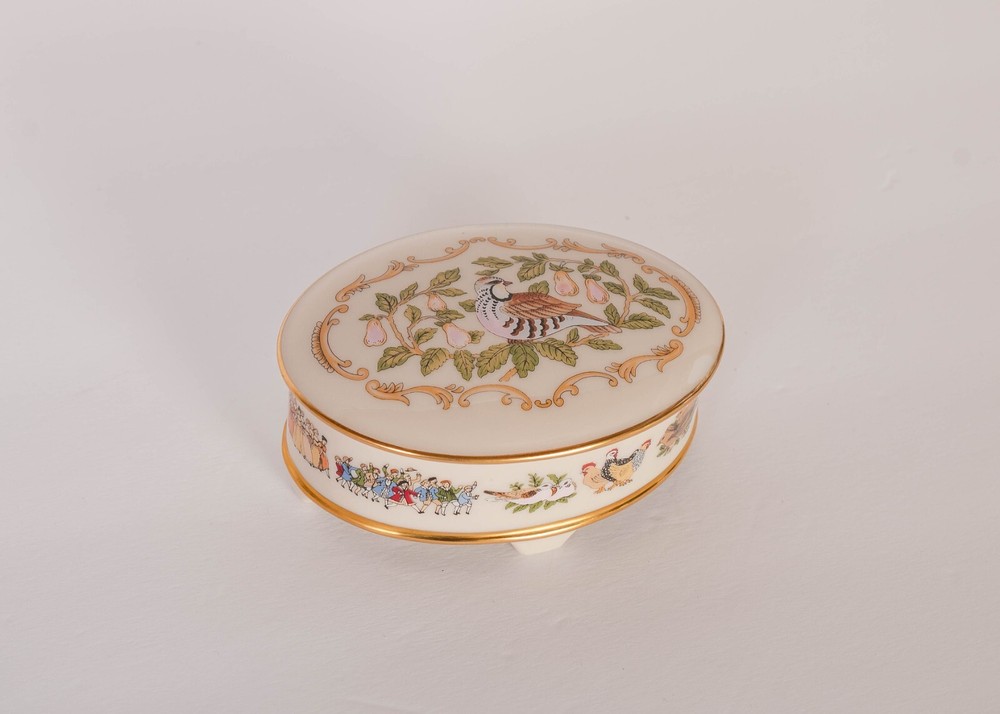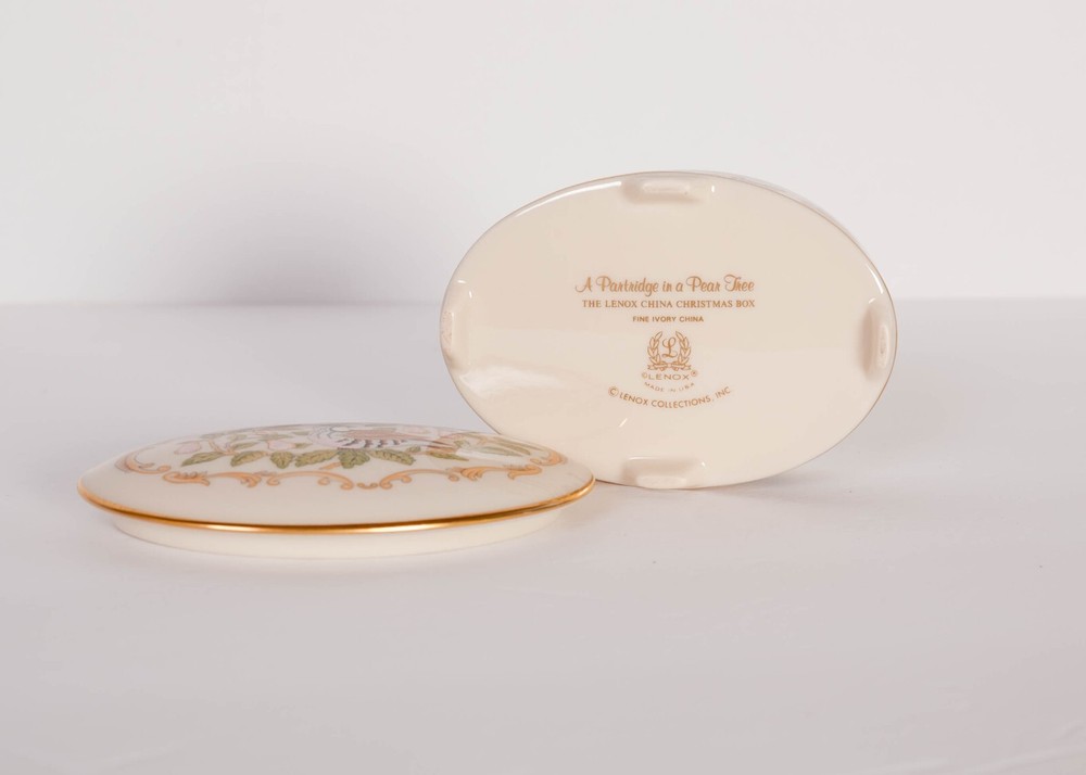 LENOX 1991 A Partridge in a Pear Tree Christmas Trinket Oval Box Fine China. Condition is Used. Shipped with USPS Ground Advantage.