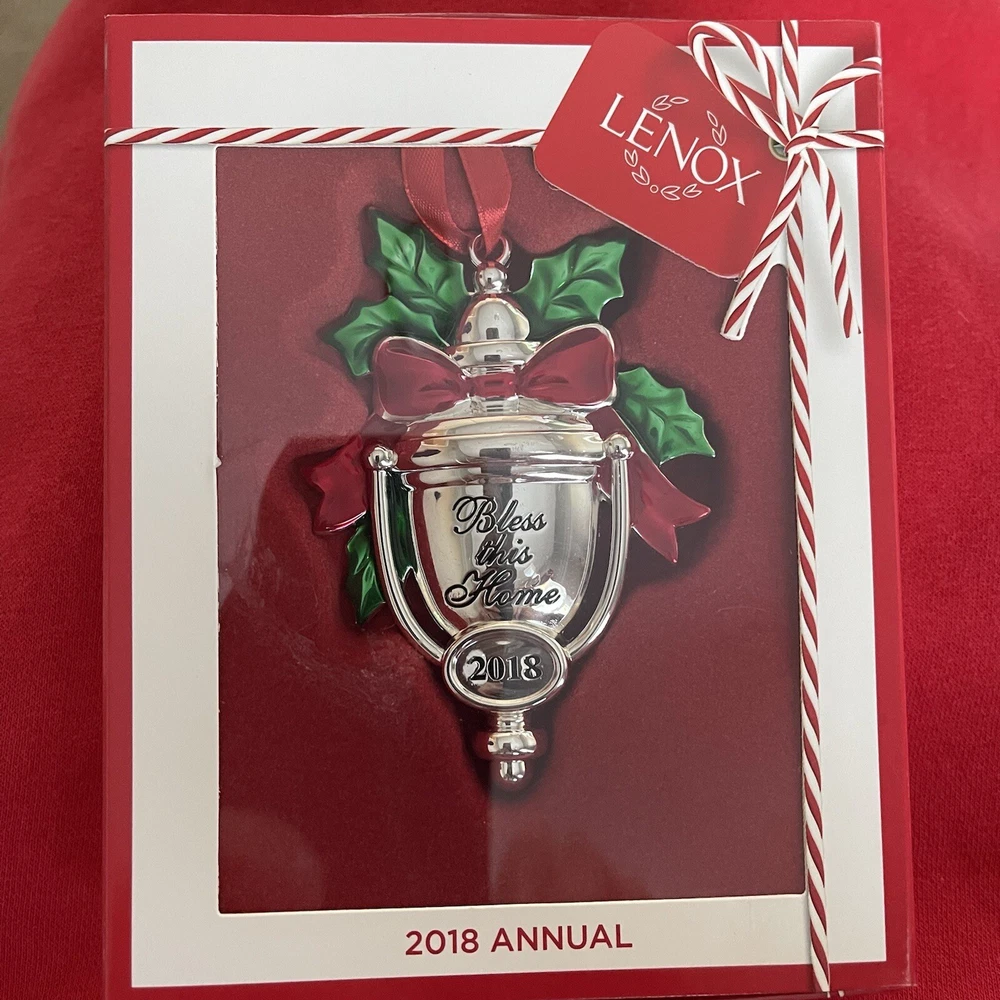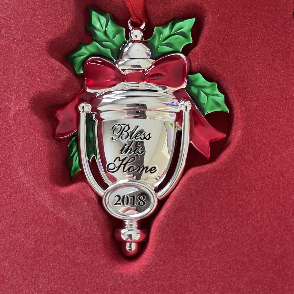 Lenox 2018 Bless This Home Ornament Silver Plated Doorknocker Red Ribbon Green Holly. New in Box. We ship within 3 days, usually sooner. Items are stored in a smoke-free, pet-free home. If you have questions, feel free to contact us through Ebay. We will do everything we can to solve any issues you may have. Thank you for shopping with us! Have a great day!!