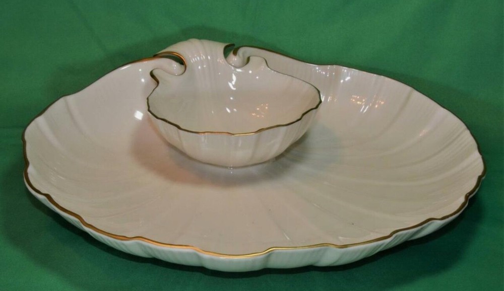 LENOX China Aegean Seashell 24K Gold 12-Inch Chip Dip Serving Bowl